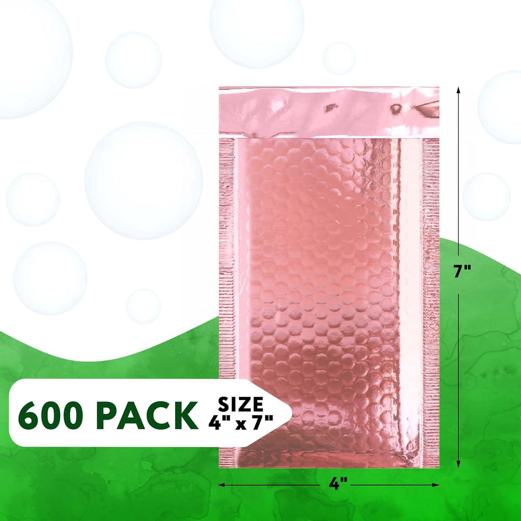 Rose Gold Bubble Mailers 4x7, Metallic Padded Envelopes Pack of 600 Cushioned Mailing Envelopes Padded, Self-Seal Bubble Envelopes, Cute Packaging for Small Business