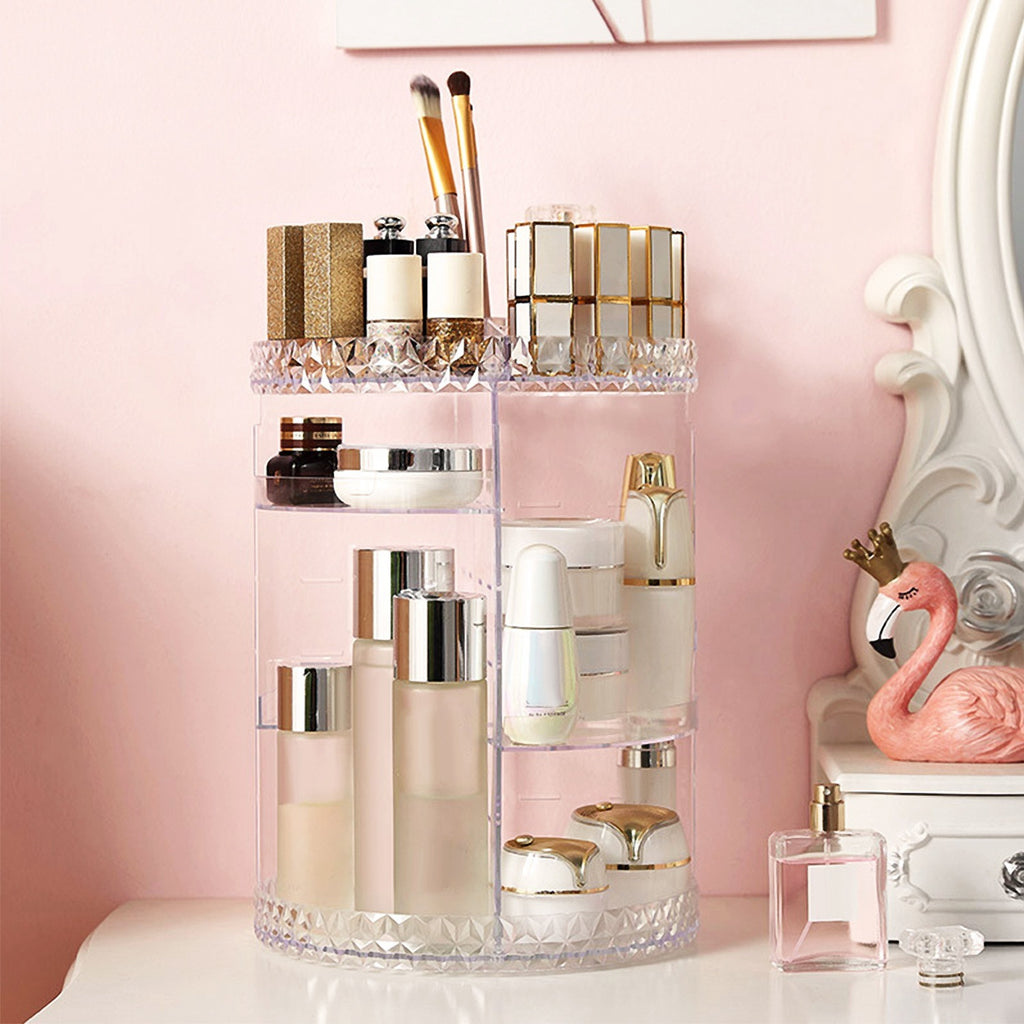 *360° Rotatable Design*:Suitable to organize and store your cosmetics and accessories. Convenient to access to all of your cosmetics by simply rotating this makeup organizer smoothly.