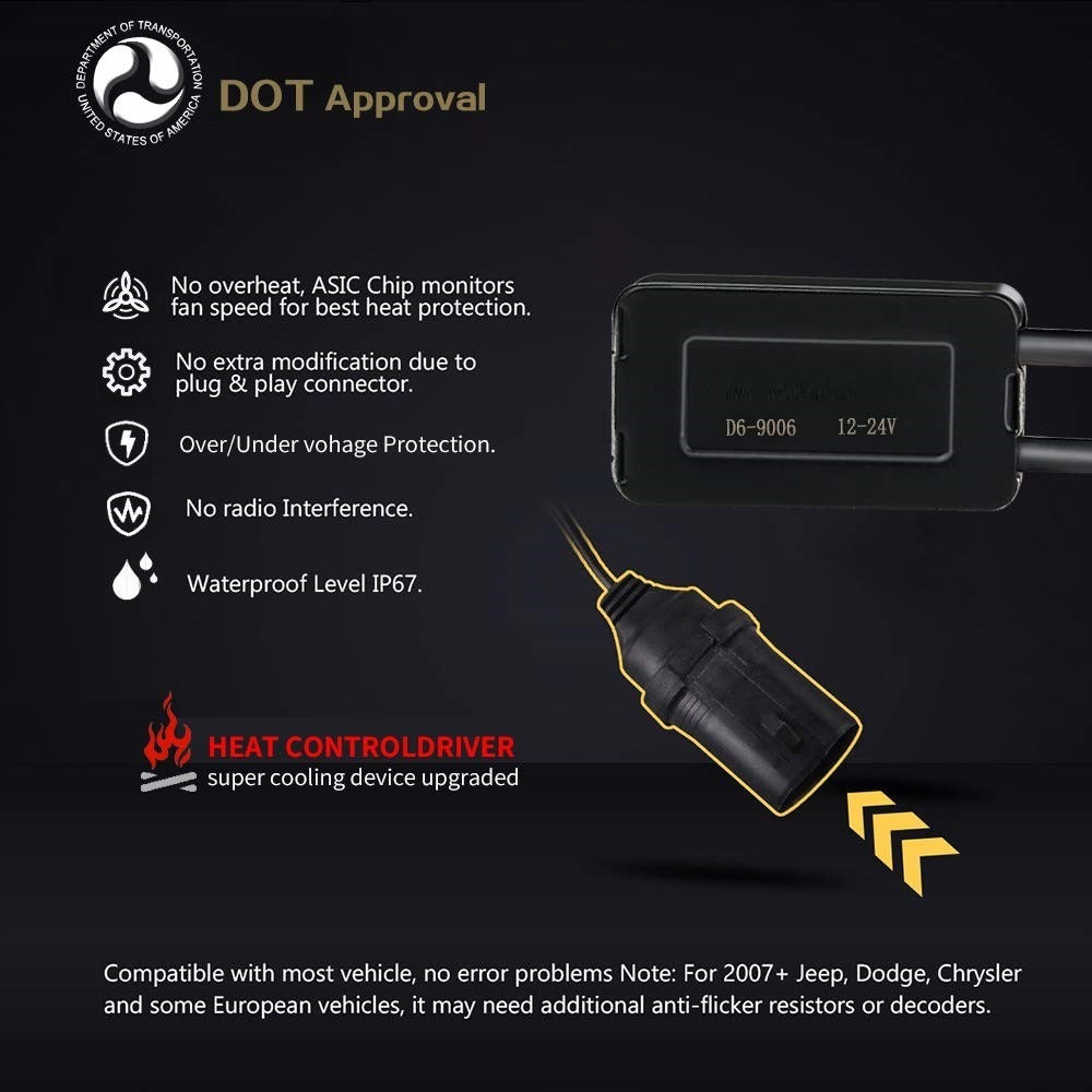 1.HIGH POWER: 6000K white light reflect road signs and road paint better to show you clearer road situation; Perfect performance in bad weather,200% brighter than your stock Halogen headlights.The latest technology to ensure a perfect beam pattern without any dark spots or foggy light.