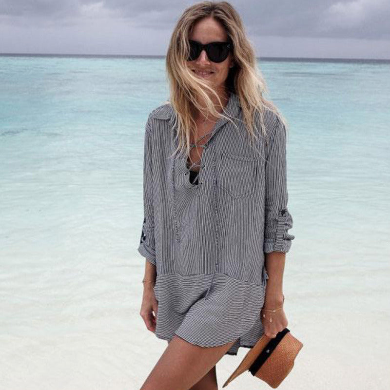 Fashion Design: Hawaiian swimsuit cover-up; two styles of stripes and prints are available; you can match with bikini; swimsuit or mini-jeans; this cover-up can also be used as daily kimono outfit.