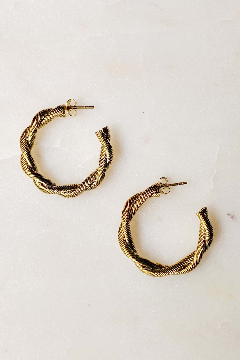 Textured twisted tube hoop earrings. Trendy and chic design. Lightweight.
