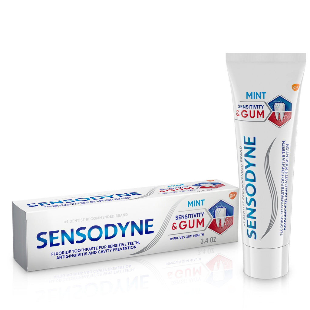 Sensodyne Sensitivity & Gum Mint toothpaste is a dual action toothpaste that's specifically designed to help people with both sensitivity and early gum problems. With its low abrasion formula; Sensodyne Sensitivity & Gum Mint is formulated to relieve tooth sensitivity and improve gum health at the same time. Some common triggers for tooth sensitivity include cold; hot; sugary or sour foods or drinks. Gum issues can go hand in hand with tooth sensitivity. With twice daily brushing; Sensodyne Sensitivity & Gum provides proven relief from the pain of sensitive teeth and builds a protective layer over sensitive areas; while targeting and removing plaque bacteria to help reduce swollen; bleeding gums. You can control both these concerning problems with one specialized toothpaste.