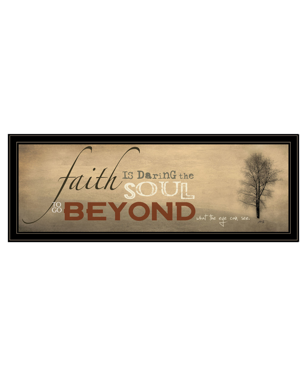 "Sepia Tree" is by Artisan Marla Rae. This 39"X15" decorative black framed wall art. This image features a variety of different font styles and sizes overlayed on an image of a tree in the distance. The script reads "Faith is daring the soul to go beyond what the eye can see.". This motivational classic would look perfect in any location as it is a very versatile image. Our products are proudly made by skilled American workers. The surface of our framed art is textured with a fade resistant coating, so no glass is necessary. A vegetable-based glue is used in the production of our products, and our frames are crafted from 100% recycled material. In keeping with our environmentally friendly approach towards manufacturing. Arrives ready to hang.•Print has fade resistant surface texture, no glass is necessary•Woman Owned Business (WBE)•Arrives ready to hang, no additional hardware needed on item•individually hand crafted by skilled American workers•Cleaning Instructions: Clean with Soft Dry Cloth Only•Made in U.S.A.•Artwork by American Artist