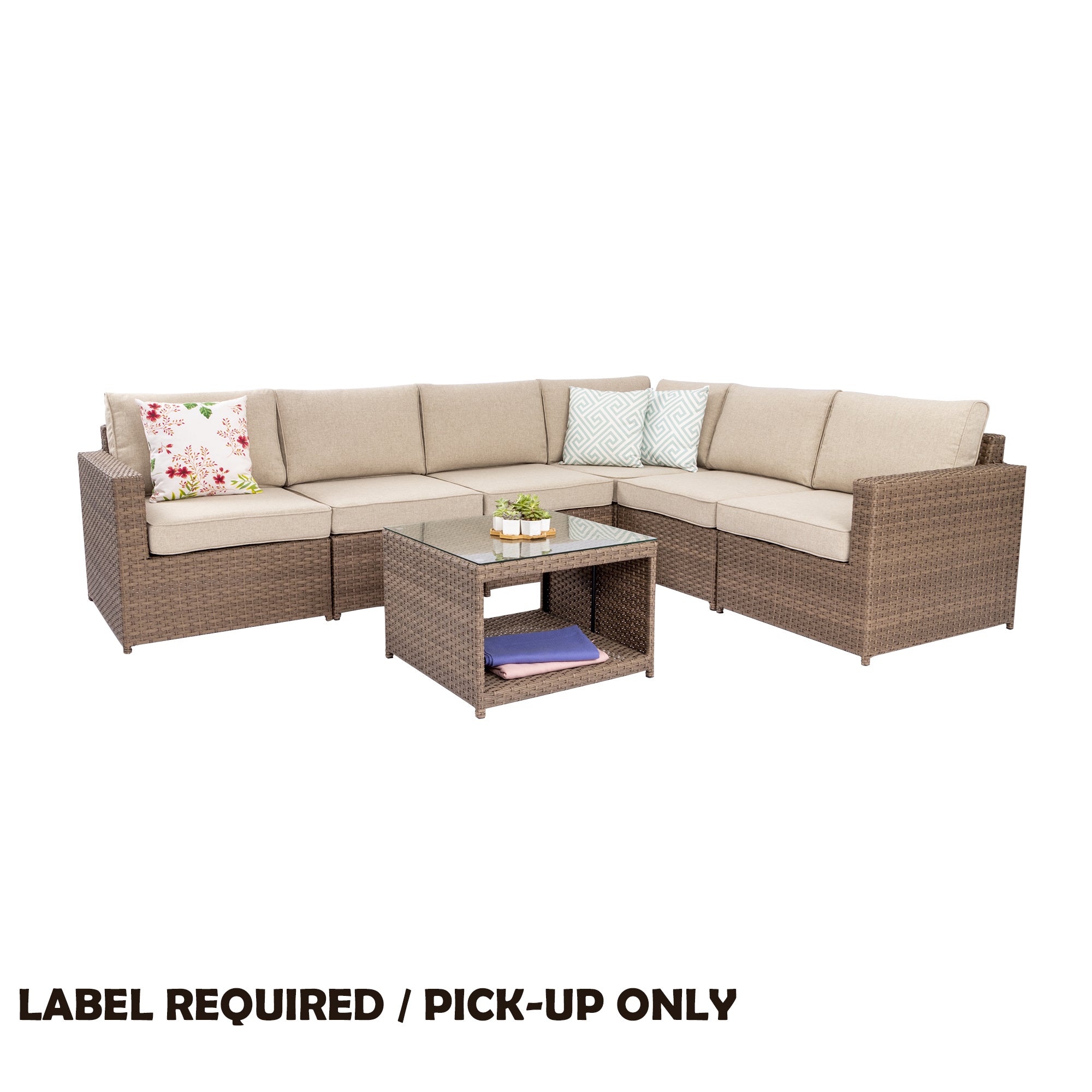 Manual Weaving Outdoor coffee table with the installation instruction, it is convenient to assemble without maintenance. Your purchase includes 2 x single arm chairs, 3 x middle chairs, 1 x corner chair 1 x coffee table with tempered glass top.