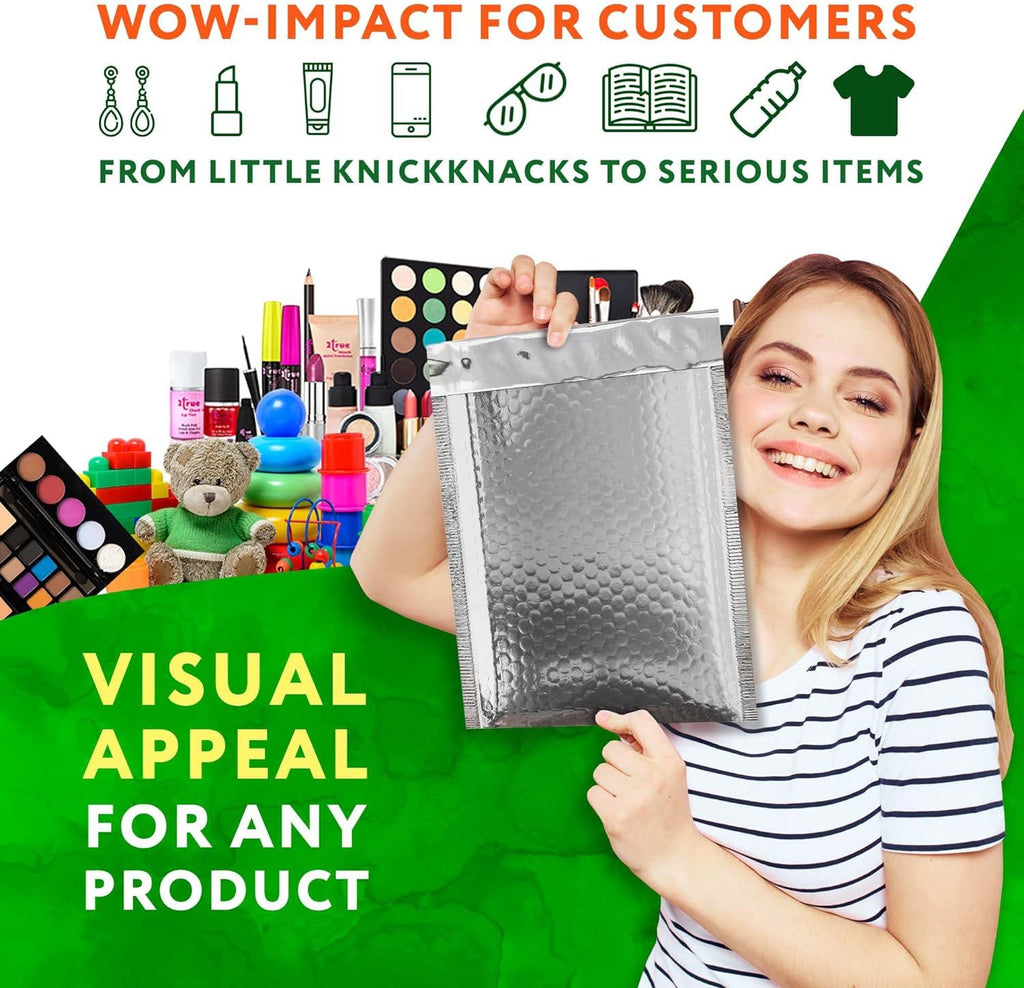 Silver Bubble Mailers 5x9, Metallic Padded Envelopes Pack of 250 Cushioned Mailing Envelopes Padded, Self-Seal Bubble Envelopes, Padded Shipping Envelopes, Cute Packaging for Small Business