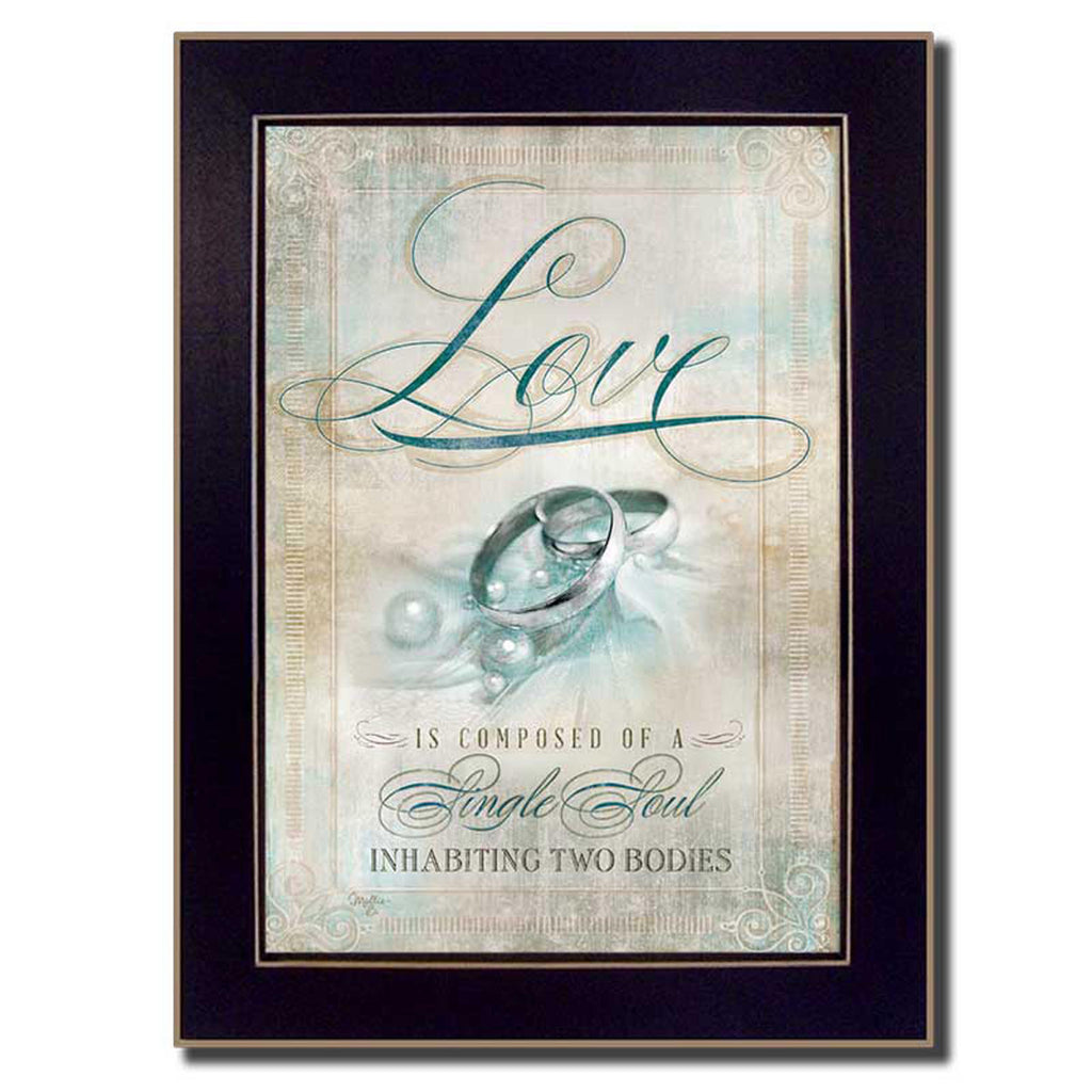 "Single Soul I" is a 14"x 20" framed print. This artwork features a pair of wedding rings with words about Love by the artist Mollie B. This totally American Made wall decor item features an attractive frame, a textured canvas like finish so no glass is necessary and is ready to hang.•Women Owned (WBE)•Textured Artwork with a 'rolled on' acid free acrylic coating to create a canvas painting effect. No glass is necessary.•UV protectant coating protects artwork from fading.•MDF moulding adds natural beauty to the framed art. Frame is keyholed for ease of hanging.