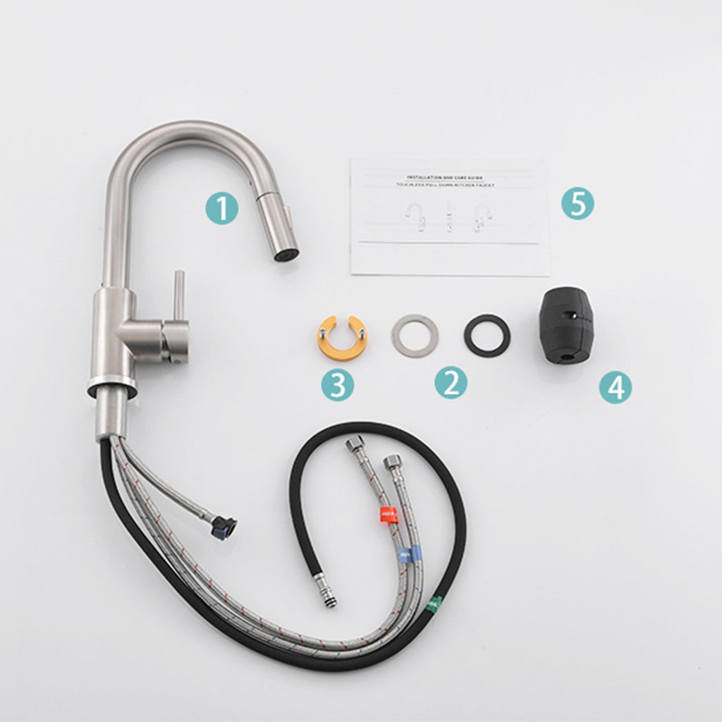 Sink Faucet, Brushed Nickel Kitchen Faucets with Pull Down Sprayer, Bathroom Sink Faucets?[ 360° Swivel Kitchen Faucet ]360° swivel black kitchen faucet with pull out spray supply full range of washing for your sink. This black faucet is suitable for bar sink, kitchen prep Sink,bathroom sink, kitchen sink and so on.?[ Pull Out Spray ]This pull down bar faucet with counterweight to lock firmly in place, and the sprayer head will automatically retract after each use.The 24" (60 cm) flexible hoses are already installed on the prep sink faucet, convenient and safe.