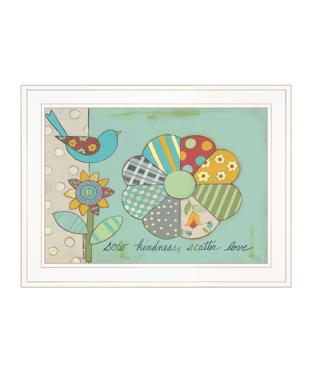 "Sow Kindness, Scatter Love" is by Artist Bernadette Deming. This 19"X15" decorative white framed wall art features a flower with a variety of different designed in the petals. On the left of the flower there is a red bird that has a different design in its tail and wing. This is a very creative print and will stop and make anyone look at all the different designs making it a perfect art for any location. Our products are proudly made by skilled American workers. The surface of our framed art is textured with a fade resistant coating, so no glass is necessary. A vegetable-based glue is used in the production of our products, and our frames are crafted from 100% recycled material. In keeping with our environmentally friendly approach towards manufacturing. Arrives ready to hang•Print has fade resistant surface texture, no glass is necessary•Woman Owned Business (WBE)•Arrives ready to hang, no additional hardware needed on item•individually hand crafted by skilled American workers•Cleaning Instructions: Clean with Soft Dry Cloth Only•Made in U.S.A.•Artwork by American Artist