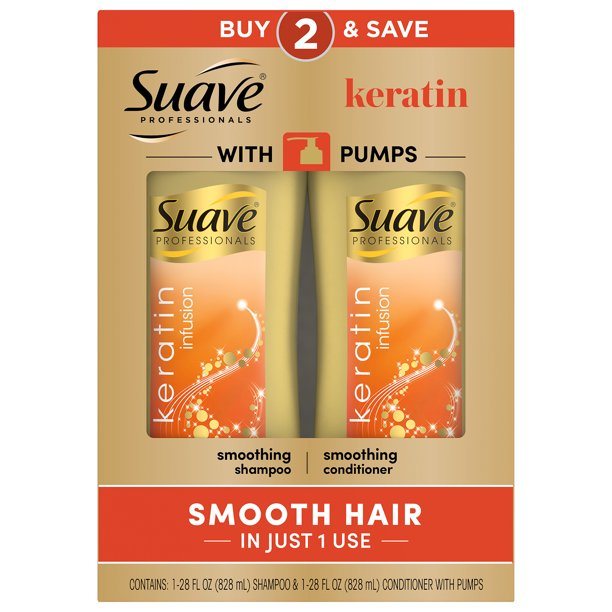 Suave Professionals Keratin Infusion Smoothing Shampoo and Conditioner 28 oz 2 Pack create smooth and manageable hair