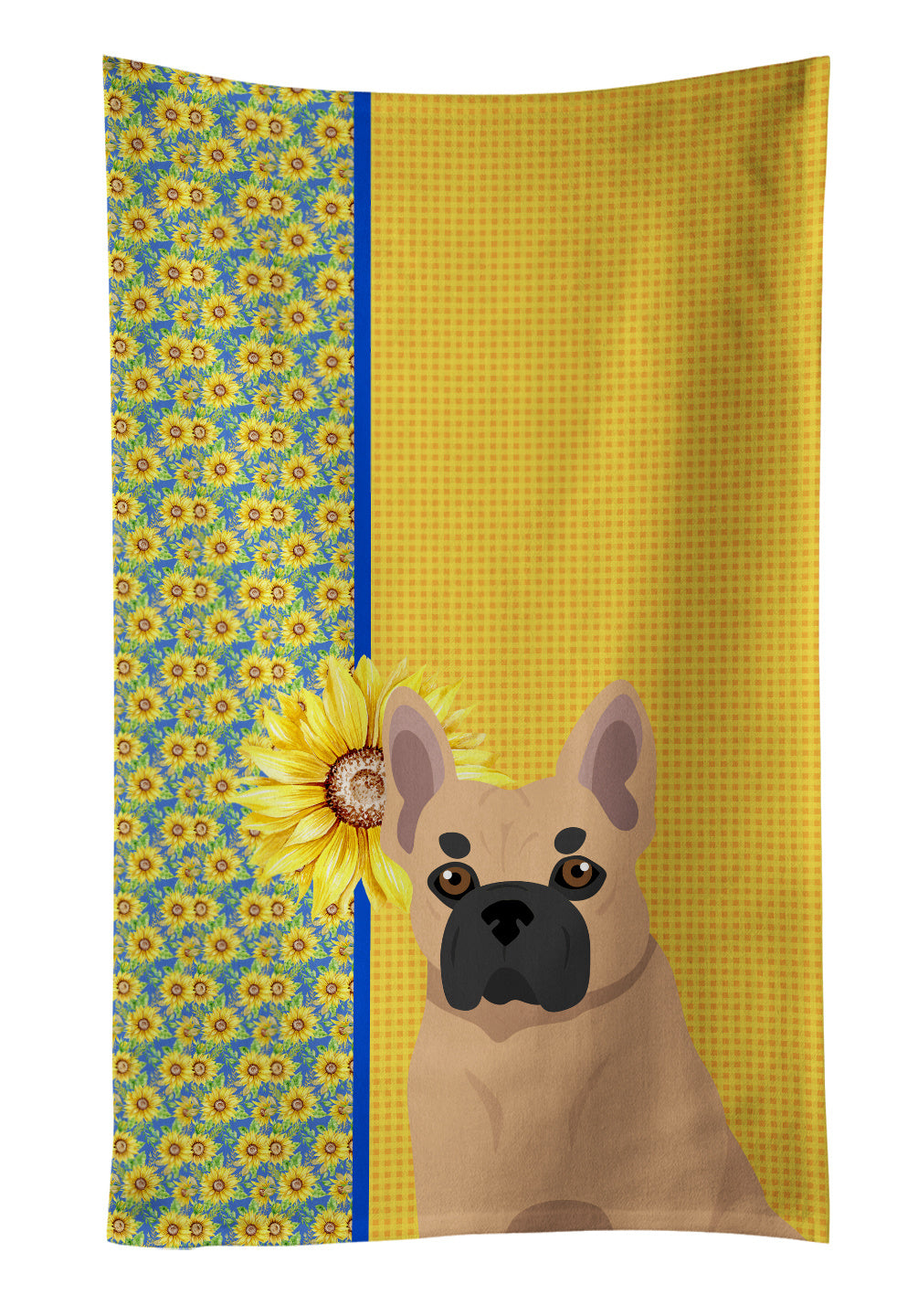 Kitchen Towel featuring breed specific French Bulldog artwork. Add this colorful Kitchen Towel to decorate for Summer, This Kitchen Towel is from Caroline's Treasures collection Summer Sunflowers. Experience the perfect blend of aesthetic appeal and functional excellence with our Plush Velour Kitchen Towels. These are not your ordinary decorative kitchen towels that gather dust. Instead, they are designed to be as practical as they are stylish. The front layer of our towel is constructed from a minky plush polyester, known for its durability and color retention. Unlike conventional kitchen towels, the artwork on our towels is dyed directly into the fabric, ensuring vibrant colors that last. Polish your glassware to a brilliant sparkle using the plush front side of the towel. Flip to the back, crafted from 100% cotton terry loop, to exploit its exceptional absorbency for drying dishes or wiping down counters. Our kitchen towels redefine the concept of functional art, offering lasting quality that maintains the towel's shape over time. Measuring 15 inches by 25 inches and weighing 2.3 lbs per dozen, these towels deliver an overwhelming sensory experience with their soft, plush, and smooth texture. The edges are meticulously finished with binding, enhancing their durability and visual appeal. For your convenience, these towels are machine washable and can be dried on low heat. After the first wash, the top fabric becomes even softer and fluffier, eliminating the need for ironing. Treat your kitchen to the luxury and functionality it deserves with our plush velour kitchen towels. This Kitchen Towel is from Caroline's Treasures Dogs category of products.