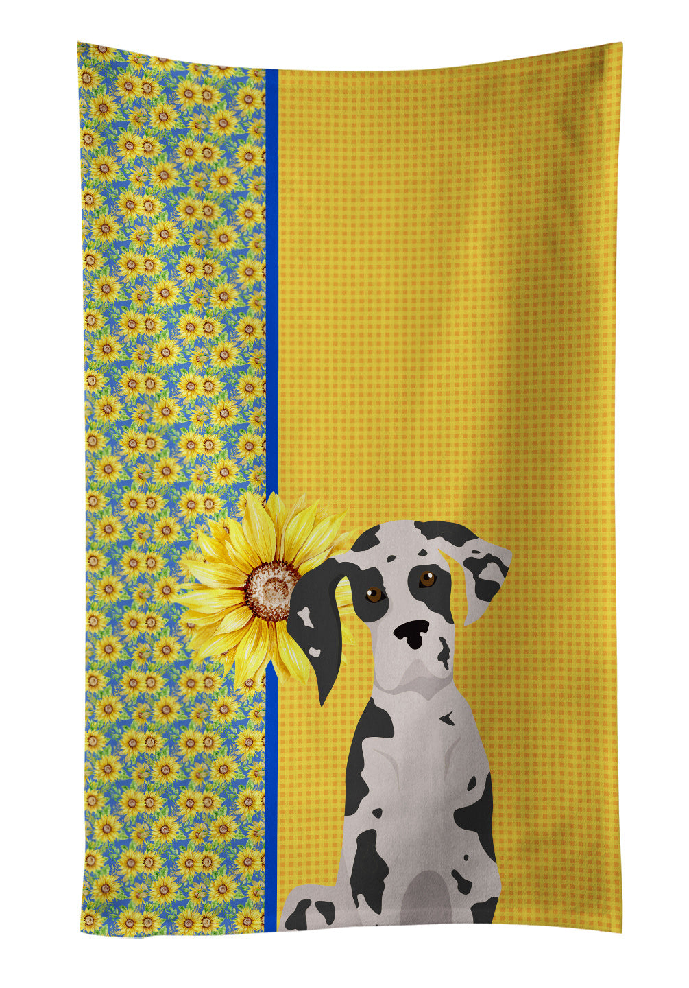 Kitchen Towel featuring breed specific Great Dane artwork. Add this colorful Kitchen Towel to decorate for Summer, This Kitchen Towel is from Caroline's Treasures collection Summer Sunflowers. Experience the perfect blend of aesthetic appeal and functional excellence with our Plush Velour Kitchen Towels. These are not your ordinary decorative kitchen towels that gather dust. Instead, they are designed to be as practical as they are stylish. The front layer of our towel is constructed from a minky plush polyester, known for its durability and color retention. Unlike conventional kitchen towels, the artwork on our towels is dyed directly into the fabric, ensuring vibrant colors that last. Polish your glassware to a brilliant sparkle using the plush front side of the towel. Flip to the back, crafted from 100% cotton terry loop, to exploit its exceptional absorbency for drying dishes or wiping down counters. Our kitchen towels redefine the concept of functional art, offering lasting quality that maintains the towel's shape over time. Measuring 15 inches by 25 inches and weighing 2.3 lbs per dozen, these towels deliver an overwhelming sensory experience with their soft, plush, and smooth texture. The edges are meticulously finished with binding, enhancing their durability and visual appeal. For your convenience, these towels are machine washable and can be dried on low heat. After the first wash, the top fabric becomes even softer and fluffier, eliminating the need for ironing. Treat your kitchen to the luxury and functionality it deserves with our plush velour kitchen towels. This Kitchen Towel is from Caroline's Treasures Dogs category of products.