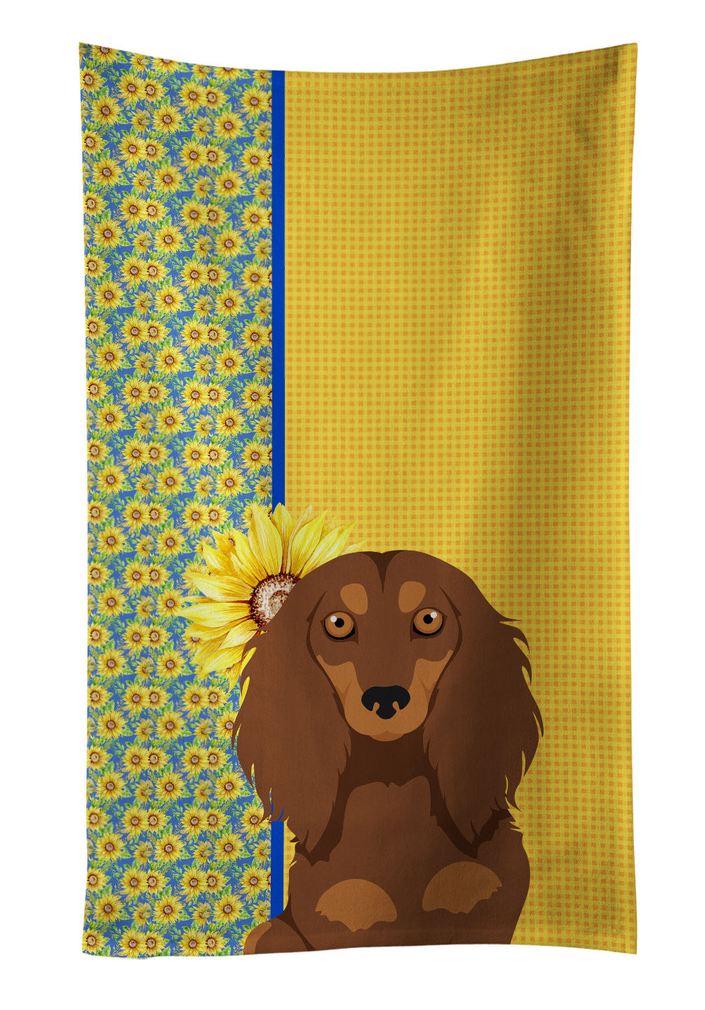 Kitchen Towel featuring breed specific Dachshund artwork. Add this colorful Kitchen Towel to decorate for Summer, This Kitchen Towel is from Caroline's Treasures collection Summer Sunflowers. Experience the perfect blend of aesthetic appeal and functional excellence with our Plush Velour Kitchen Towels. These are not your ordinary decorative kitchen towels that gather dust. Instead, they are designed to be as practical as they are stylish. The front layer of our towel is constructed from a minky plush polyester, known for its durability and color retention. Unlike conventional kitchen towels, the artwork on our towels is dyed directly into the fabric, ensuring vibrant colors that last. Polish your glassware to a brilliant sparkle using the plush front side of the towel. Flip to the back, crafted from 100% cotton terry loop, to exploit its exceptional absorbency for drying dishes or wiping down counters. Our kitchen towels redefine the concept of functional art, offering lasting quality that maintains the towel's shape over time. Measuring 15 inches by 25 inches and weighing 2.3 lbs per dozen, these towels deliver an overwhelming sensory experience with their soft, plush, and smooth texture. The edges are meticulously finished with binding, enhancing their durability and visual appeal. For your convenience, these towels are machine washable and can be dried on low heat. After the first wash, the top fabric becomes even softer and fluffier, eliminating the need for ironing. Treat your kitchen to the luxury and functionality it deserves with our plush velour kitchen towels. This Kitchen Towel is from Caroline's Treasures Dogs category of products.