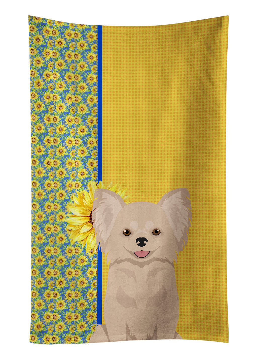 Summer Sunflowers Longhaired Cream Chihuahua Kitchen Towel Dish Cloths Guest Hand Towel Decorative Bathroom Towel for Face,Tea, Dishcloth, Kitchen and Bath