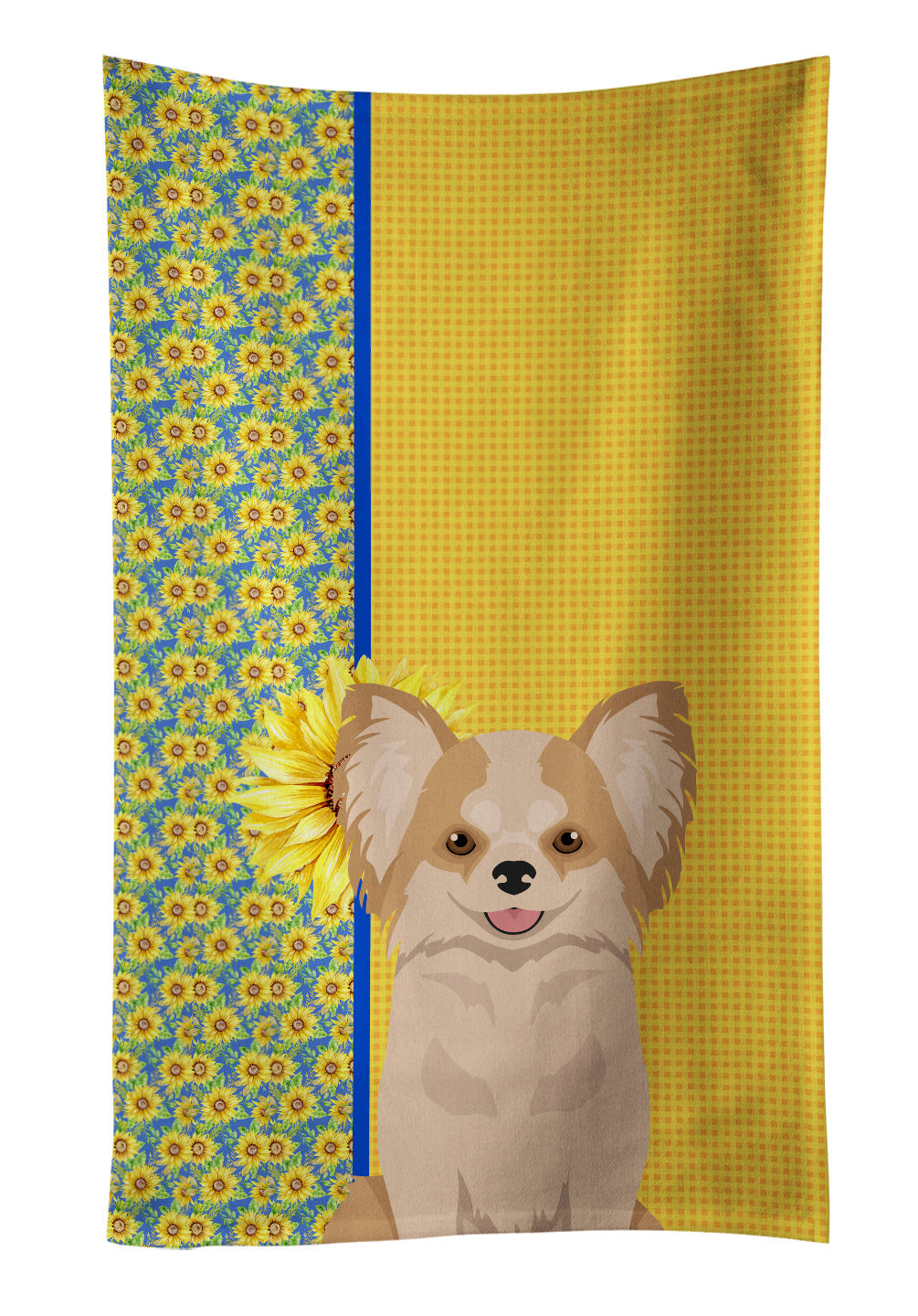 Summer Sunflowers Longhaired Gold and White Chihuahua Kitchen Towel Dish Cloths Guest Hand Towel Decorative Bathroom Towel for Face,Tea, Dishcloth, Kitchen and Bath