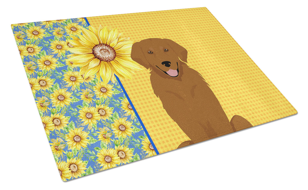 Glass Cutting Board featuring breed specific Golden Retriever artwork. Add this colorful Cutting Board to decorate for Summer, This Glass Cutting Board is from Caroline's Treasures collection Summer Sunflowers. Introduce your kitchen to the vibrant, large Decorative Glass Cutting Board from Caroline's Treasures. Crafted from resilient tempered glass, this board is not only a utilitarian necessity but also a colorful art piece. With its generous dimensions of 15 inches in height and 12 inches in length, it offers ample space for all your cutting needs. Every piece showcases captivating artwork from distinguished artists, bringing an aesthetic edge to your kitchen. Beyond its attractive design, this cutting board ensures your countertop stays pristine and unscathed, owing to its heat-resistant properties. Engineered with user convenience in mind, it features non-skid feet for stability, and rounded corners for additional safety. Its robust construction renders it virtually unbreakable, guaranteeing longevity. The board comes with protective feet bumpers, maintaining its position during use. This product is recommended to be hand washed only. Proudly printed and assembled in the United States, this cutting board exemplifies superior craftsmanship. With Caroline's Treasures' Decorative Glass Cutting Board, you're investing in a blend of functionality and artistic flair. This Cutting Board is from Caroline's Treasures Dogs category of products.