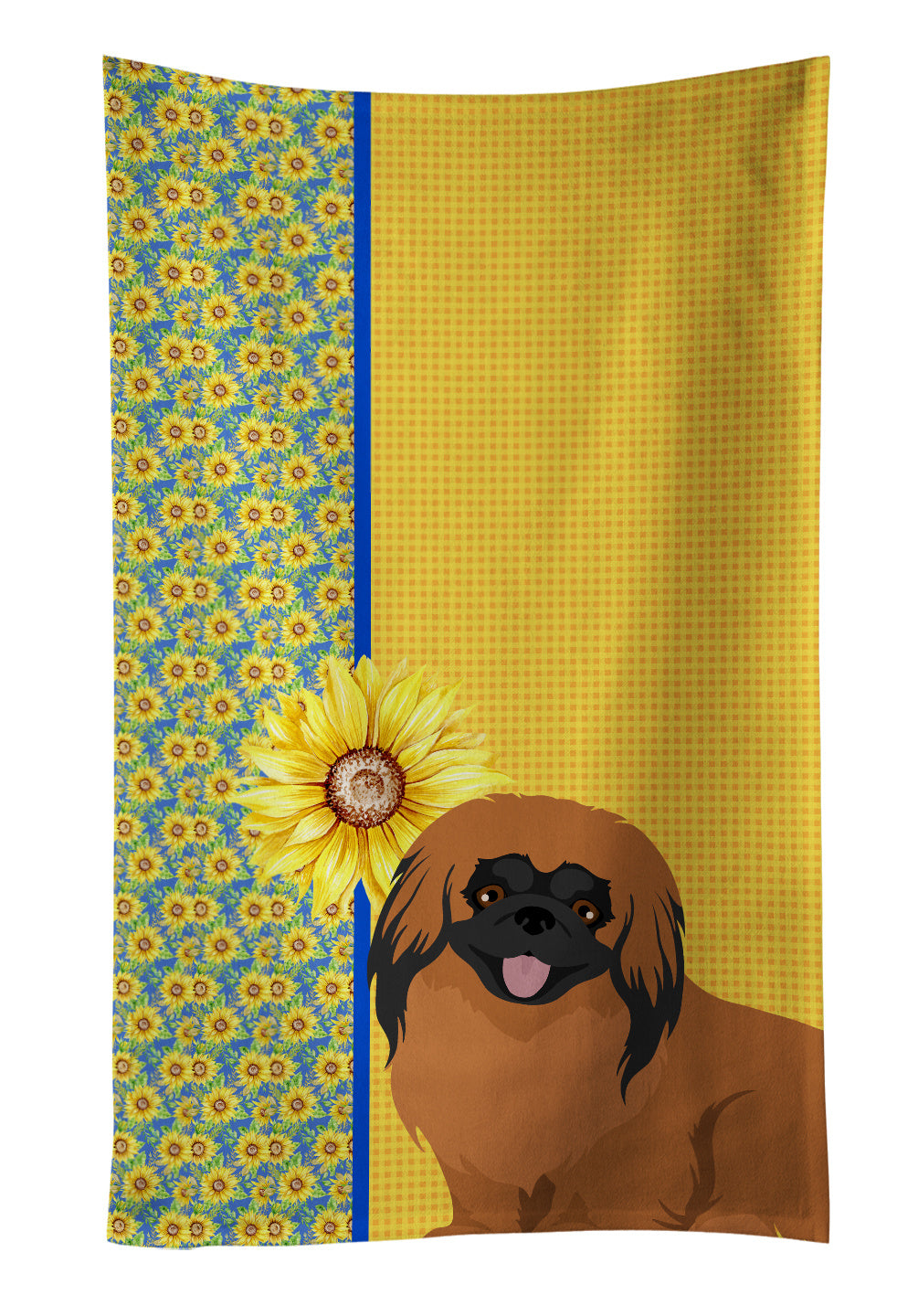 Kitchen Towel featuring breed specific Pekingese artwork. Add this colorful Kitchen Towel to decorate for Summer, This Kitchen Towel is from Caroline's Treasures collection Summer Sunflowers. Experience the perfect blend of aesthetic appeal and functional excellence with our Plush Velour Kitchen Towels. These are not your ordinary decorative kitchen towels that gather dust. Instead, they are designed to be as practical as they are stylish. The front layer of our towel is constructed from a minky plush polyester, known for its durability and color retention. Unlike conventional kitchen towels, the artwork on our towels is dyed directly into the fabric, ensuring vibrant colors that last. Polish your glassware to a brilliant sparkle using the plush front side of the towel. Flip to the back, crafted from 100% cotton terry loop, to exploit its exceptional absorbency for drying dishes or wiping down counters. Our kitchen towels redefine the concept of functional art, offering lasting quality that maintains the towel's shape over time. Measuring 15 inches by 25 inches and weighing 2.3 lbs per dozen, these towels deliver an overwhelming sensory experience with their soft, plush, and smooth texture. The edges are meticulously finished with binding, enhancing their durability and visual appeal. For your convenience, these towels are machine washable and can be dried on low heat. After the first wash, the top fabric becomes even softer and fluffier, eliminating the need for ironing. Treat your kitchen to the luxury and functionality it deserves with our plush velour kitchen towels. This Kitchen Towel is from Caroline's Treasures Dogs category of products.