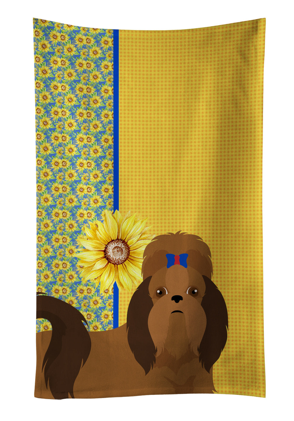 Kitchen Towel featuring breed specific Shih Tzu artwork. Add this colorful Kitchen Towel to decorate for Summer, This Kitchen Towel is from Caroline's Treasures collection Summer Sunflowers. Experience the perfect blend of aesthetic appeal and functional excellence with our Plush Velour Kitchen Towels. These are not your ordinary decorative kitchen towels that gather dust. Instead, they are designed to be as practical as they are stylish. The front layer of our towel is constructed from a minky plush polyester, known for its durability and color retention. Unlike conventional kitchen towels, the artwork on our towels is dyed directly into the fabric, ensuring vibrant colors that last. Polish your glassware to a brilliant sparkle using the plush front side of the towel. Flip to the back, crafted from 100% cotton terry loop, to exploit its exceptional absorbency for drying dishes or wiping down counters. Our kitchen towels redefine the concept of functional art, offering lasting quality that maintains the towel's shape over time. Measuring 15 inches by 25 inches and weighing 2.3 lbs per dozen, these towels deliver an overwhelming sensory experience with their soft, plush, and smooth texture. The edges are meticulously finished with binding, enhancing their durability and visual appeal. For your convenience, these towels are machine washable and can be dried on low heat. After the first wash, the top fabric becomes even softer and fluffier, eliminating the need for ironing. Treat your kitchen to the luxury and functionality it deserves with our plush velour kitchen towels. This Kitchen Towel is from Caroline's Treasures Dogs category of products.