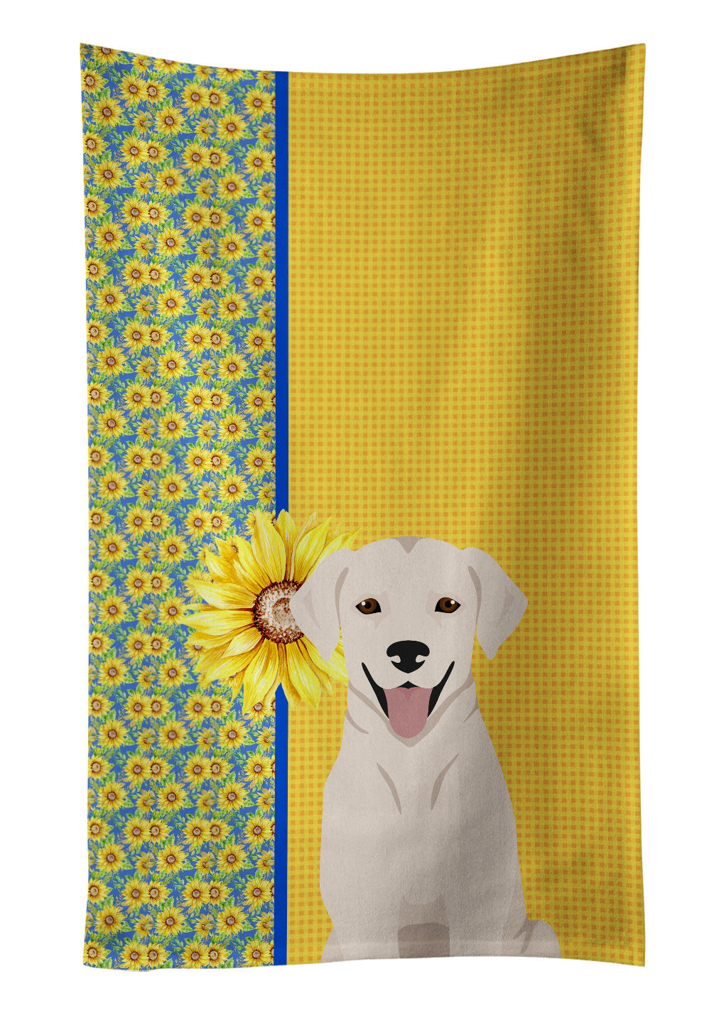 Kitchen Towel featuring breed specific Labrador Retriever artwork. Add this colorful Kitchen Towel to decorate for Summer, This Kitchen Towel is from Caroline's Treasures collection Summer Sunflowers. Experience the perfect blend of aesthetic appeal and functional excellence with our Plush Velour Kitchen Towels. These are not your ordinary decorative kitchen towels that gather dust. Instead, they are designed to be as practical as they are stylish. The front layer of our towel is constructed from a minky plush polyester, known for its durability and color retention. Unlike conventional kitchen towels, the artwork on our towels is dyed directly into the fabric, ensuring vibrant colors that last. Polish your glassware to a brilliant sparkle using the plush front side of the towel. Flip to the back, crafted from 100% cotton terry loop, to exploit its exceptional absorbency for drying dishes or wiping down counters. Our kitchen towels redefine the concept of functional art, offering lasting quality that maintains the towel's shape over time. Measuring 15 inches by 25 inches and weighing 2.3 lbs per dozen, these towels deliver an overwhelming sensory experience with their soft, plush, and smooth texture. The edges are meticulously finished with binding, enhancing their durability and visual appeal. For your convenience, these towels are machine washable and can be dried on low heat. After the first wash, the top fabric becomes even softer and fluffier, eliminating the need for ironing. Treat your kitchen to the luxury and functionality it deserves with our plush velour kitchen towels. This Kitchen Towel is from Caroline's Treasures Dogs category of products.