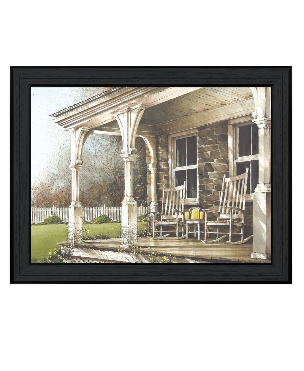 JR137-405 "Sunday Afternoon" is by artisan John Rossini is a black framed wall art 27"x21". This print features an old brick house with a country rustic setting. The front porch has two rocking chairs with glasses of lemonade resting upon an end table for perfect sunny after of resting. The background of the print features a white picket fence with trees that have lost all the fall leaves. Our products are proudly made by skilled American workers. The surface of our framed art is textured with a fade resistant coating, so no glass is necessary. A vegetable-based glue is used in the production of our products, and our frames are crafted from 100% recycled material. In keeping with our environmentally friendly approach toward manufacturing. •Print has fade resistant surface texture, no glass is necessary•Woman Owned Business (WBE)•Arrives ready to hang, no additional hardware needed on item•Individually hand crafted by skilled American workers•Clean with Soft Dry Cloth Only