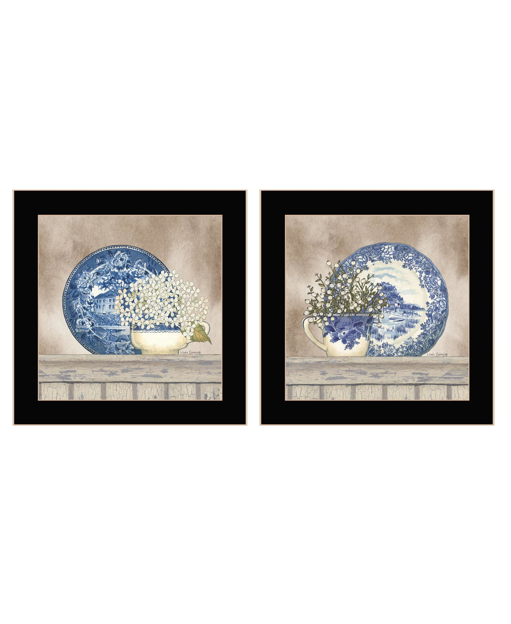 "The Farmhouse Blues Collection" Vignette is by Artisan Linda Spivey. This 2-14"X14" decorative black framed wall art. This two piece set features a chipped paint countertop with a blue and white decorative plate and matching cup. The cups has an arrangement of white flowers that adds and accent to the image. This image would be perfect for any location. Our products are proudly made by skilled American workers. The surface of our framed art is textured with a fade resistant coating, so no glass is necessary. A vegetable-based glue is used in the production of our products, and our frames are crafted from 100% recycled material. In keeping with our environmentally friendly approach towards manufacturing. Arrives ready to hang.•Print has fade resistant surface texture, no glass is necessary•Woman Owned Business (WBE)•Arrives ready to hang, no additional hardware needed on item•individually hand crafted by skilled American workers•Cleaning Instructions: Clean with Soft Dry Cloth Only•Made in U.S.A.•Artwork by American Artist