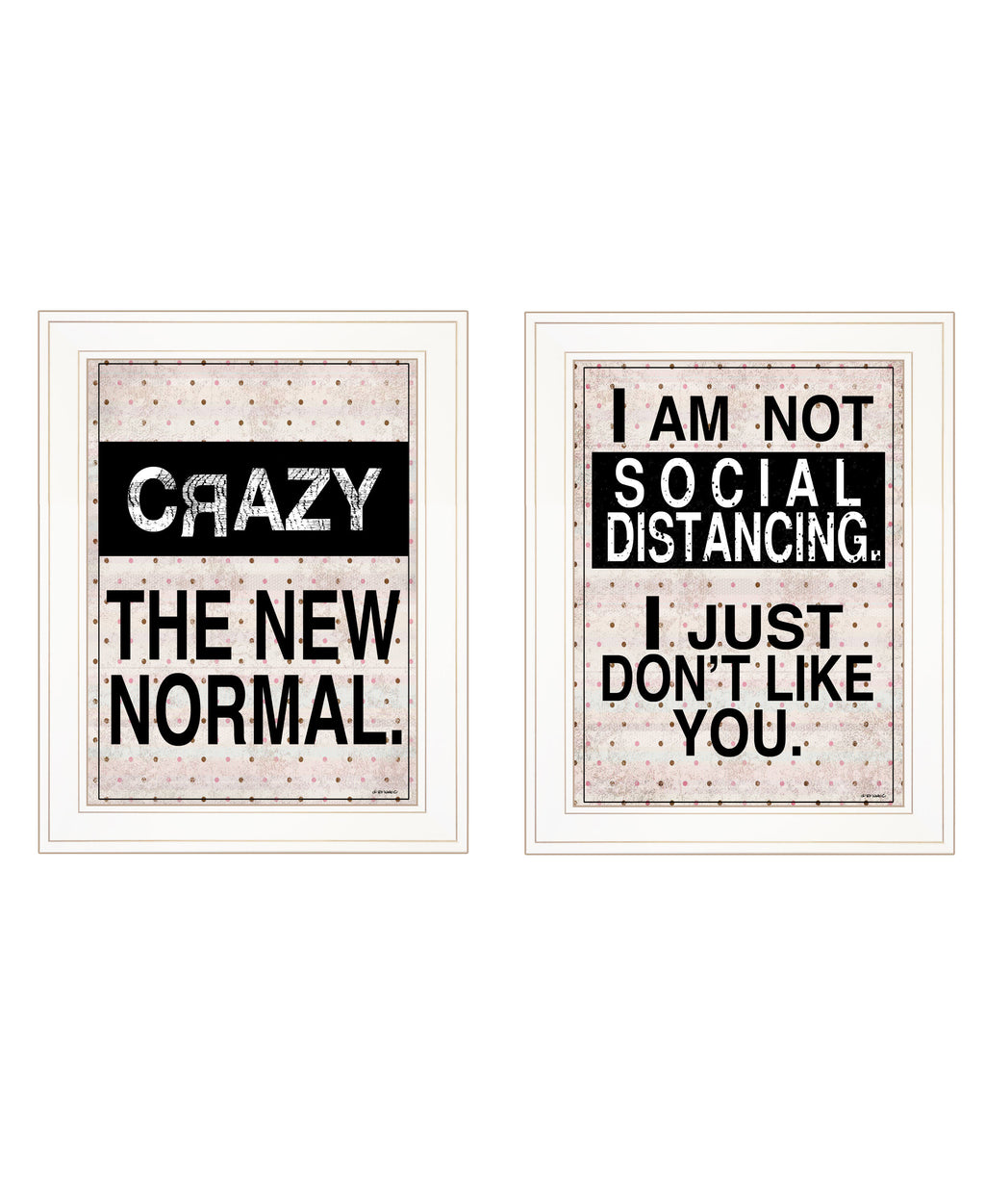 "The New Normal!" Vignette is by Artisan Ed Wargo. This 2-14"X18" decorative white framed wall art. if you want to feel better-read these 2 framed prints and you will catch yourself laughing! The new normal IS CRAZY TODAY! Also social distancing just gives us a reason to stay further away from the people we don't like! Our products are proudly made by skilled American workers. The surface of our framed art is textured with a fade resistant coating, so no glass is necessary. A vegetable-based glue is used in the production of our products, and our frames are crafted from 100% recycled material. In keeping with our environmentally friendly approach towards manufacturing. Arrives ready to hang.•Print has fade resistant surface texture, no glass is necessary•Woman Owned Business (WBE)•Arrives ready to hang, no additional hardware needed on item•individually hand crafted by skilled American workers•Cleaning Instructions: Clean with Soft Dry Cloth Only•Made in U.S.A.•Artwork by American Artist