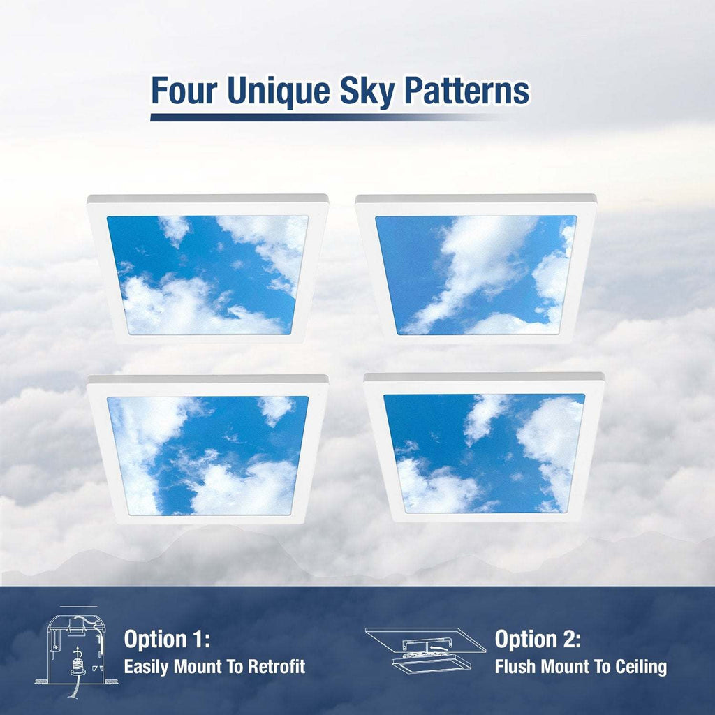 Beyond LED's ''THE SKY DOWNLIGHT'' is the most innovative and revolutionary product of 2023. Its Patent- pending design, which comes in 12'' Square and Round and offers four unique patterns, gives the ceiling an aesthetically pleasing experience by offering a realistically close simulation of the natural sky in indoor spaces. With reduced glare and homogeneous illumination, the Sky Downlight improves focus and concentration. Sky Downlight is simple to install and comes with two mounting options: recessed to existing can or flush mount to ceiling connects to J-Box. Sky Downlight luminaires are perfect for corporate environments, educational and health facilities, basements, and general lighting applications in hotels, motels, residential, and commercial properties. These ETL-certified downlight comes with full 5 years warranty.