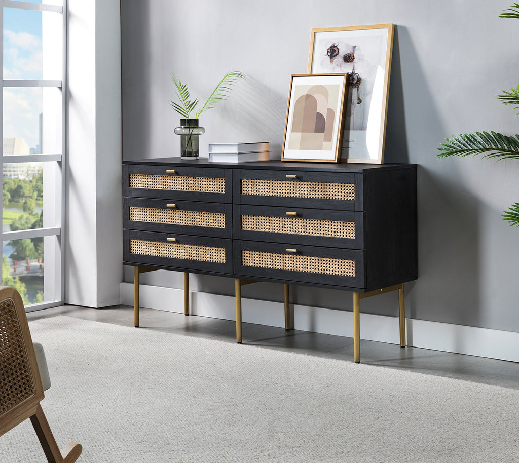 Unique Design: The rattan design we chose matches the main color of the dresser and the golden metal legs, and the overall sense of luxury is full.