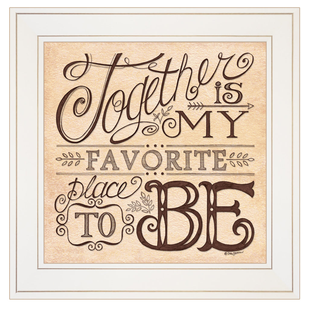 DS673-226G Together by Deb Strain. This decorative white framed 15x15 is a print of Love: Together is the Best Place to Be. Framed prints arrive ready to hang. •TEXTURED ARTWORK with a 'rolled on' acid-free acrylic coating to create a canvas painting effect.•UV PROTECTANT COATING protects artwork from fading. No glass is necessary.• MOULDING adds natural beauty to the framed art. Frame is keyholed for the easy hanging.•THIS FINE HOME DECOR piece made in the USA by Woman Owned Business (WBE) is a perfect gift for a friend or relative.