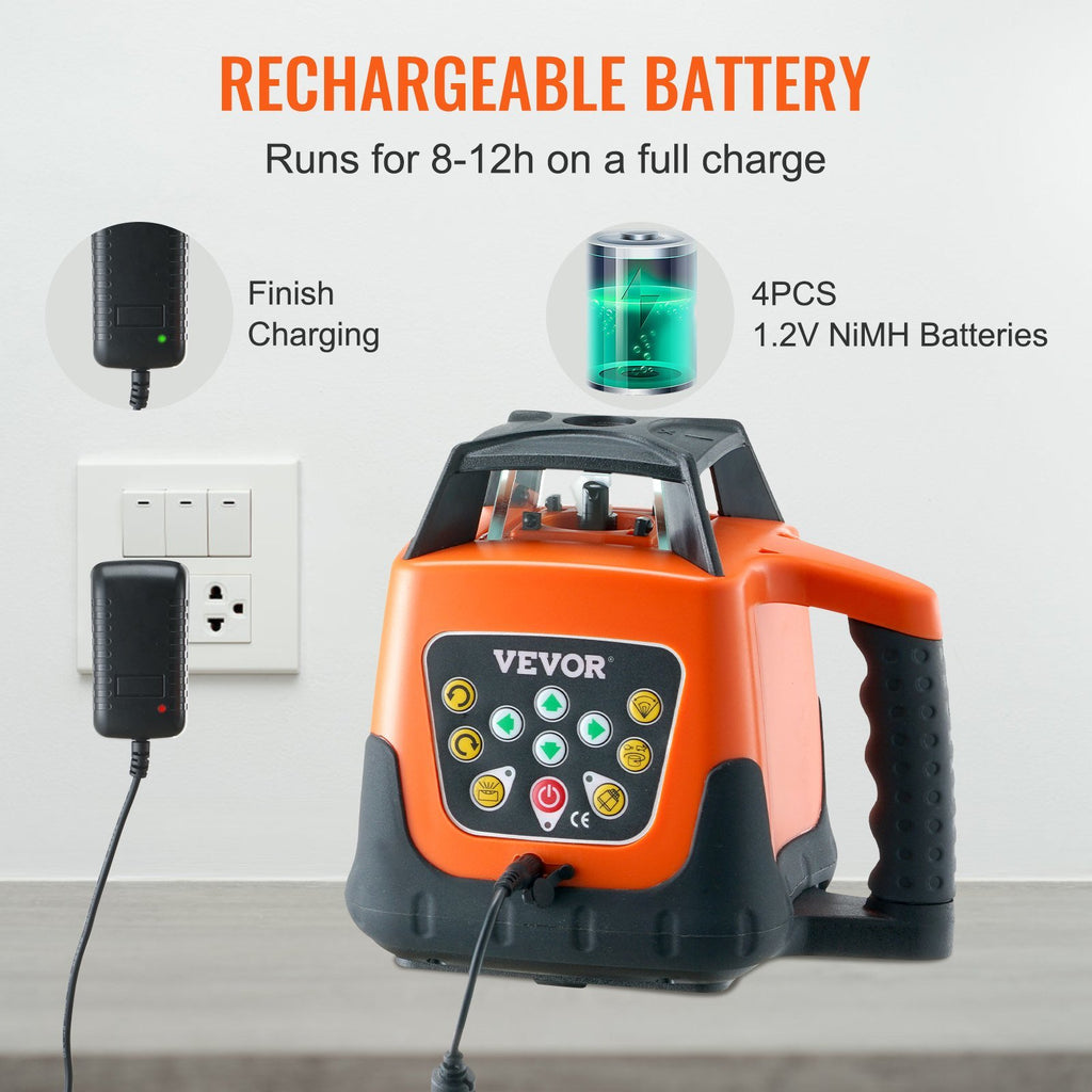 Ready to break free from restrictions imposed by short working distances? Our rotary laser level empowers you with an impressive range of up to 2000 ft, making expansive projects a breeze. Choose between self-leveling mode or manual mode for inclined surfaces. Laser precision is at your fingertips.