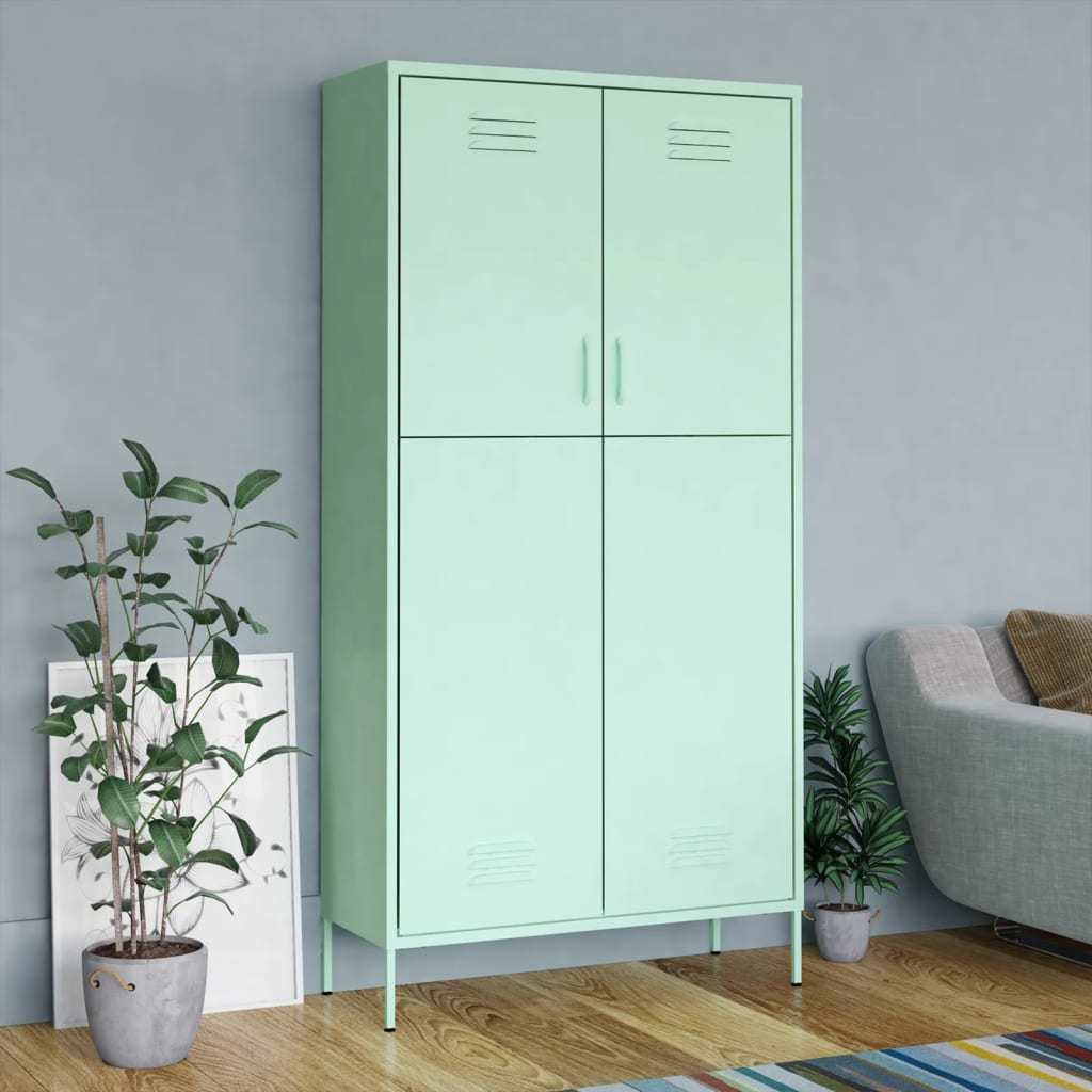 This clothing cabinet is made of steel, making it durable as well as easy to clean. This clothing cabinet has 4 adjustable shelves and a large compartment with a hanging rod, which offer you ample storage space both for your longer outfits and other folded clothes or accessories, such as sweaters, jeans, hats, hand bags, etc.