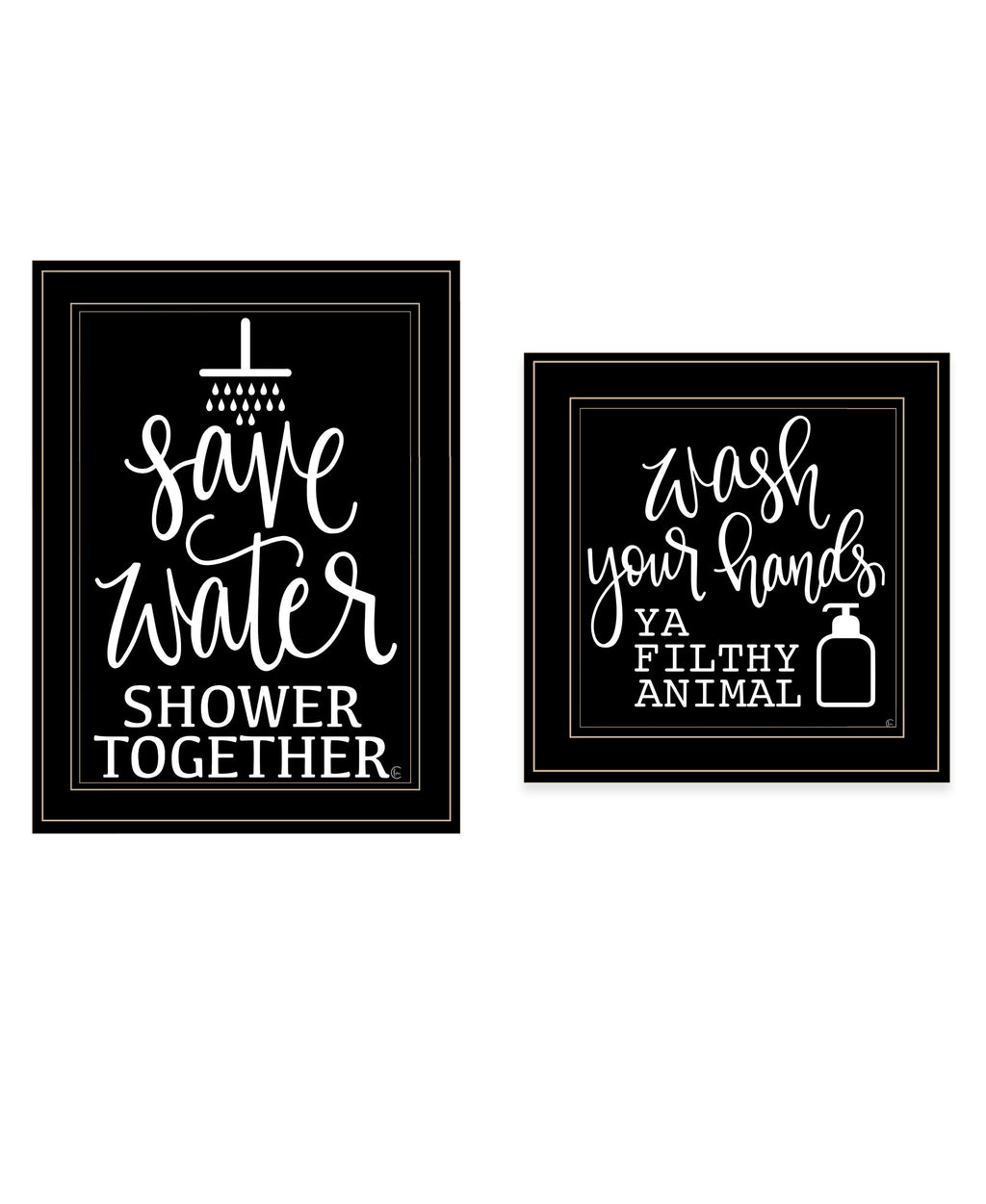 "Wash Up" Vignette is by Artisan Fearfully Made Creations. This 1-15"X19" & 1-15"X15" decorative black framed wall art. This humorous set of typographic black and white print features two image both with script reading "Wash Your Hands YA FILTHY ANIMAL" & "Save Water Shower Together". One has a soap dispenser sitting by the words and the other a showerhead raining the words down. This creative wall art would look adorable in any bathroom location. Our products are proudly made by skilled American workers. The surface of our framed art is textured with a fade resistant coating, so no glass is necessary. A vegetable-based glue is used in the production of our products, and our frames are crafted from 100% recycled material. In keeping with our environmentally friendly approach towards manufacturing. Arrives ready to hang.•Print has fade resistant surface texture, no glass is necessary•Woman Owned Business (WBE)•Arrives ready to hang, no additional hardware needed on item•individually hand crafted by skilled American workers•Cleaning Instructions: Clean with Soft Dry Cloth Only•Made in U.S.A.•Artwork by American Artist