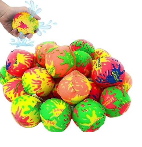 About this item. 12 SPLASH BALLS: Features Nylon absorbent fabric covered foam balls. Each ball measures 2" inches in diameter. Just let the balls soak up water and they are ready to toss.. WATER GAMES: Splash the competition with these active colorful water splash balls that are reusable water balloons over and over unlike water balloons. Soft enough for play battles since the are made of fabric.. PARTY FAVORS: Makes the perfect prize for kids party favors; for Luau themed birthday party; small toy giveaways at your summer themed party; goodie bag fillers; pool party favors for kids; toddlers; teens & adults. End of Year Gifts for Students from Teachers; Easter basket stuffers bulk for boys girls teens.. OUTDOOR SUMMER GAMES FOR ADULTS AND FAMILY: Finally an activity that the whole family can enjoy. Who doesn't enjoy a ball toss game?. POOL/BEACH TOYS: Perfect for pool toys for kids 3-10; beach games; toddler beach stuff & accessories; beach toys; sand toys; summer toys for outdoor games and activities; pool toys for toddlers age 2-4; beach toys for kids 3-10. Note: The color of the ball is random
