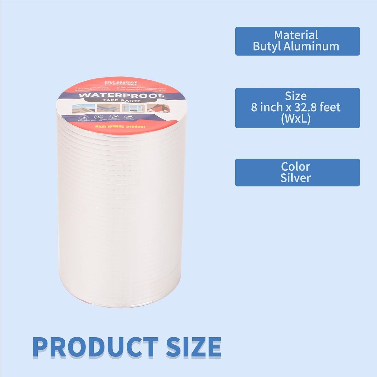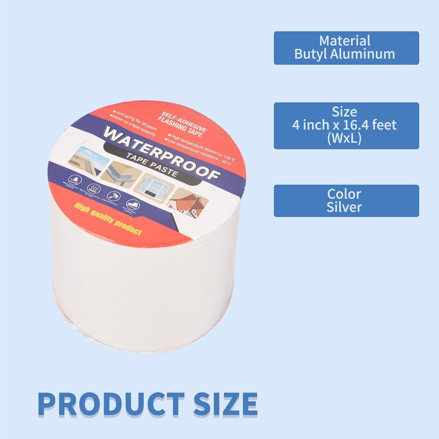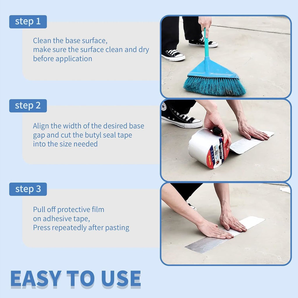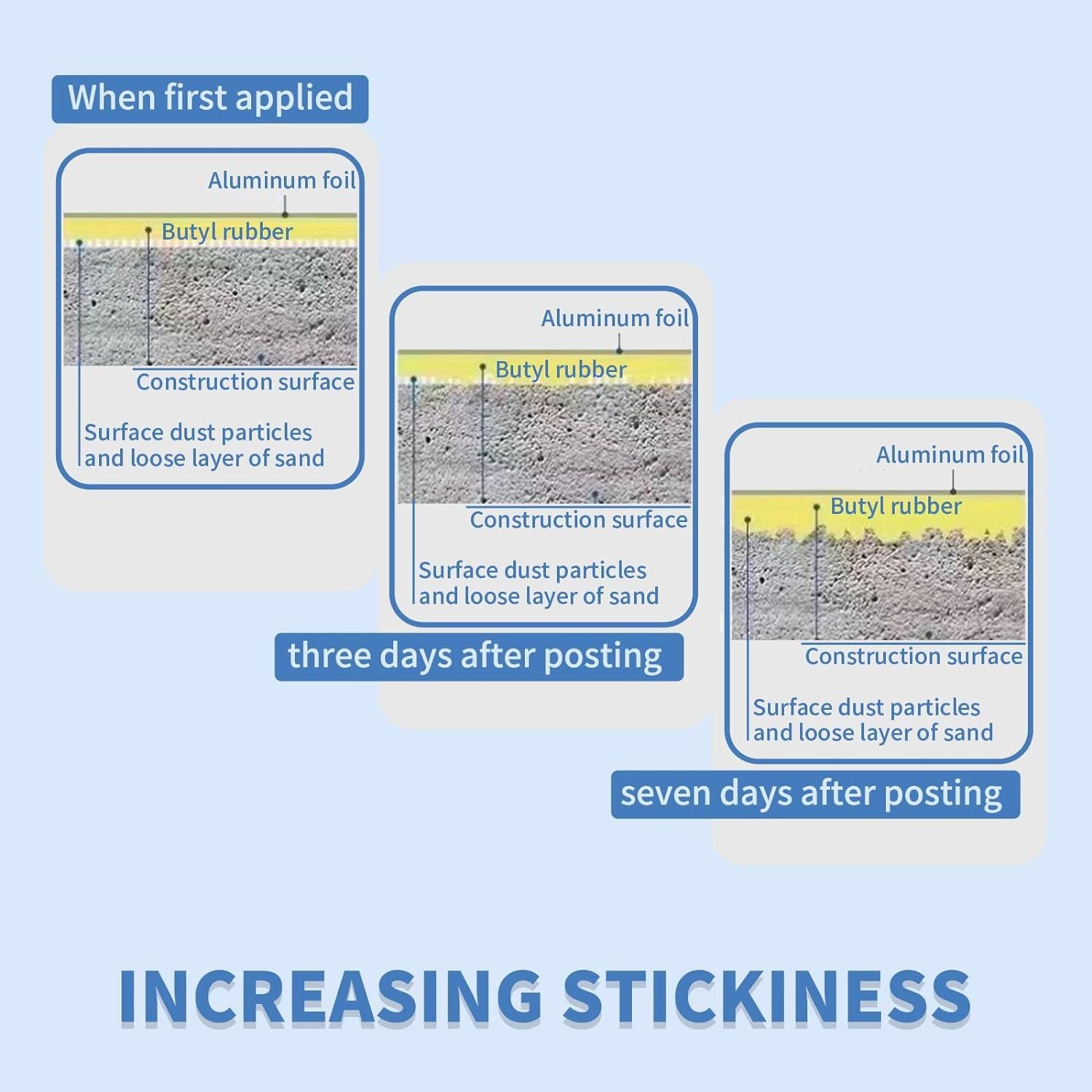 [SAFE & DURABLE]This super waterproof butyl seal duct tape is made of aluminum foil and butyl rubber. Butyl rubber is environmentally friendly material, and has a high viscosity. The small, square aluminum foil structure on the surface is abrasion-resistant and scratch-resistant. It also has a reflective and heat insulating effect. Don't have to worry about damage to the surface of the object from high temperatures.