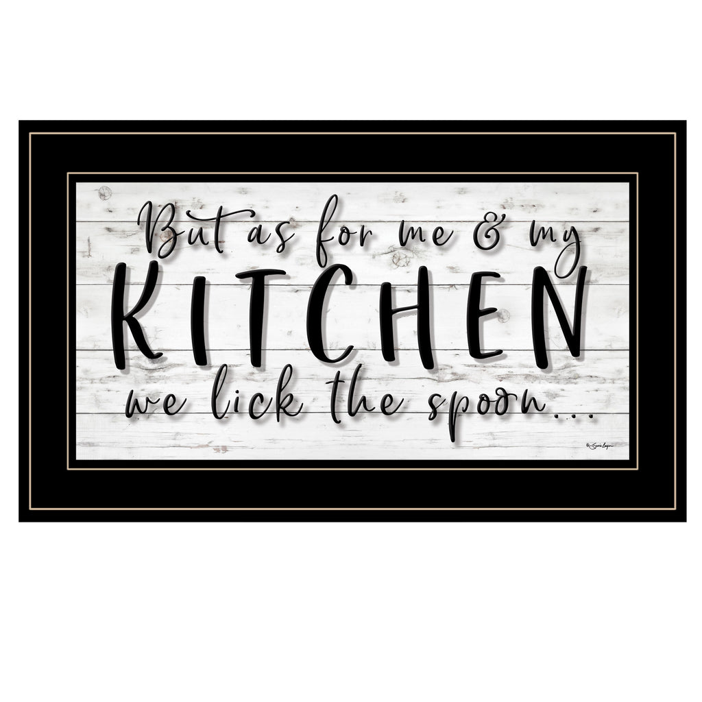 BOY403D-704G "We Lick the Spoon" by Susie Boyer. This black frame 27x15 print would be great for a kitchen with script; saying "But as for me & my Kitchen we lick the spoon". The surface of the art is coated with a fade resistant texture which gives it a canvas-like appearance. No glass is necessary. Arrives ready to hang.•Women Owned (WBE)•Textured Artwork with a 'rolled on' acid free acrylic coating to create a canvas painting effect. No glass is necessary.•UV protectant coating protects artwork from fading.•Molding adds natural beauty to the framed art. Frame is keyholed for ease of hanging.•Frame is keyholed for ease of hanging.