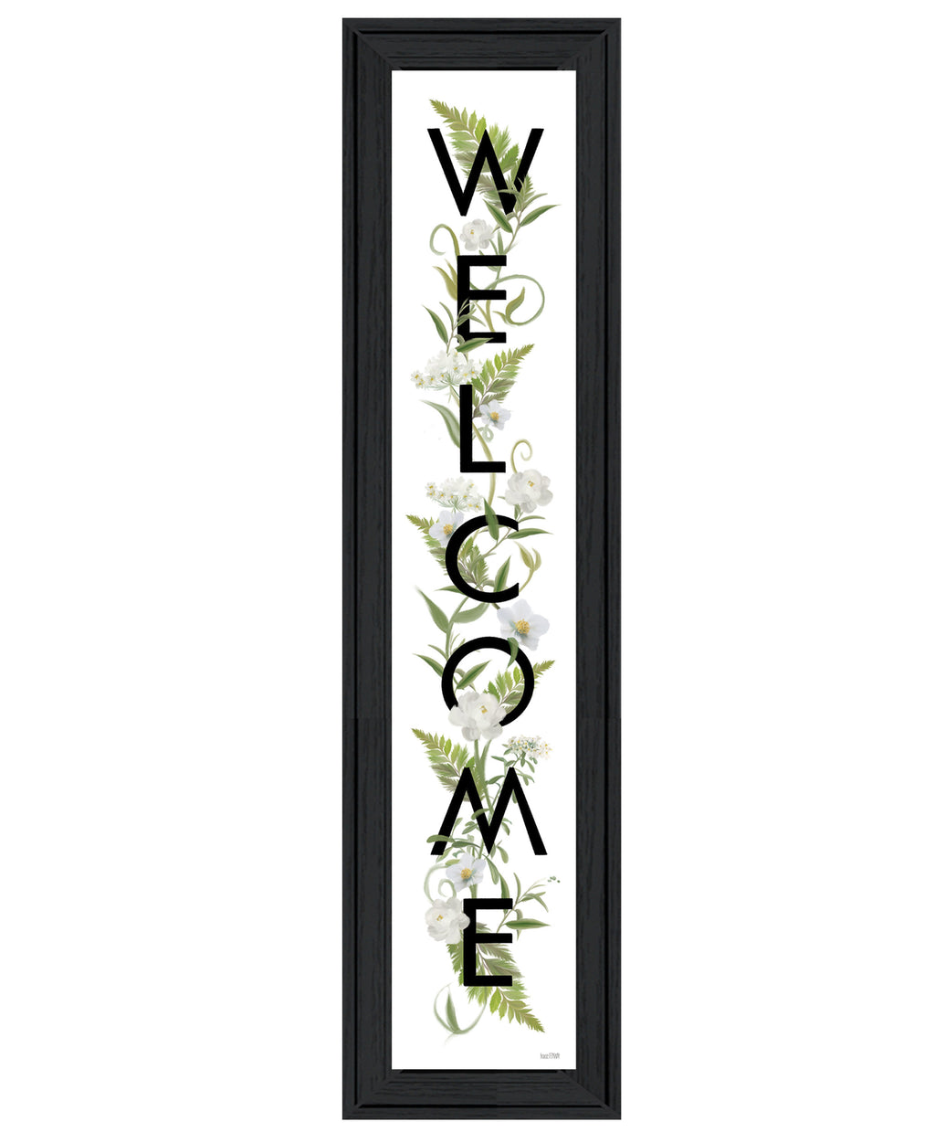 "Welcome Sign II" is by Artisan House Fenway. This 9"X33" decorative black framed wall art. Welcome to our Home; as warm inviting framed sign for your guest. Our products are proudly made by skilled American workers. The surface of our framed art is textured with a fade resistant coating, so no glass is necessary. A vegetable-based glue is used in the production of our products, and our frames are crafted from 100% recycled material. In keeping with our environmentally friendly approach towards manufacturing. Arrives ready to hang.•Print has fade resistant surface texture, no glass is necessary•Woman Owned Business (WBE)•Arrives ready to hang, no additional hardware needed on item•individually hand crafted by skilled American workers•Cleaning Instructions: Clean with Soft Dry Cloth Only•Made in U.S.A.•Artwork by American Artist