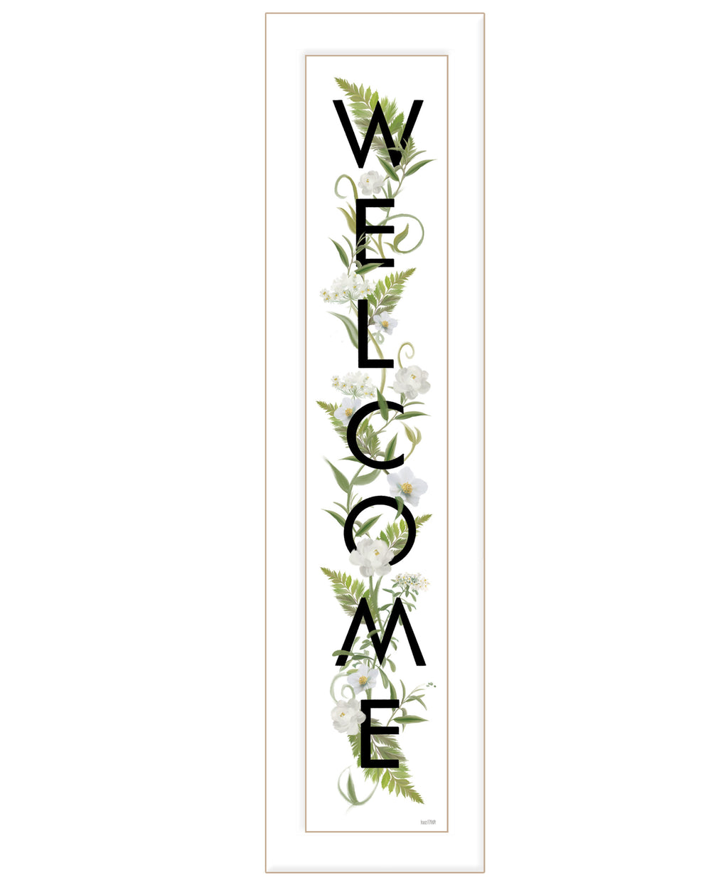 "Welcome Sign II" is by Artisan House Fenway. This 9"X33" decorative white framed wall art. Welcome to our Home; as warm inviting framed sign for your guest. Our products are proudly made by skilled American workers. The surface of our framed art is textured with a fade resistant coating, so no glass is necessary. A vegetable-based glue is used in the production of our products, and our frames are crafted from 100% recycled material. In keeping with our environmentally friendly approach towards manufacturing. Arrives ready to hang.•Print has fade resistant surface texture, no glass is necessary•Woman Owned Business (WBE)•Arrives ready to hang, no additional hardware needed on item•individually hand crafted by skilled American workers•Cleaning Instructions: Clean with Soft Dry Cloth Only•Made in U.S.A.•Artwork by American Artist