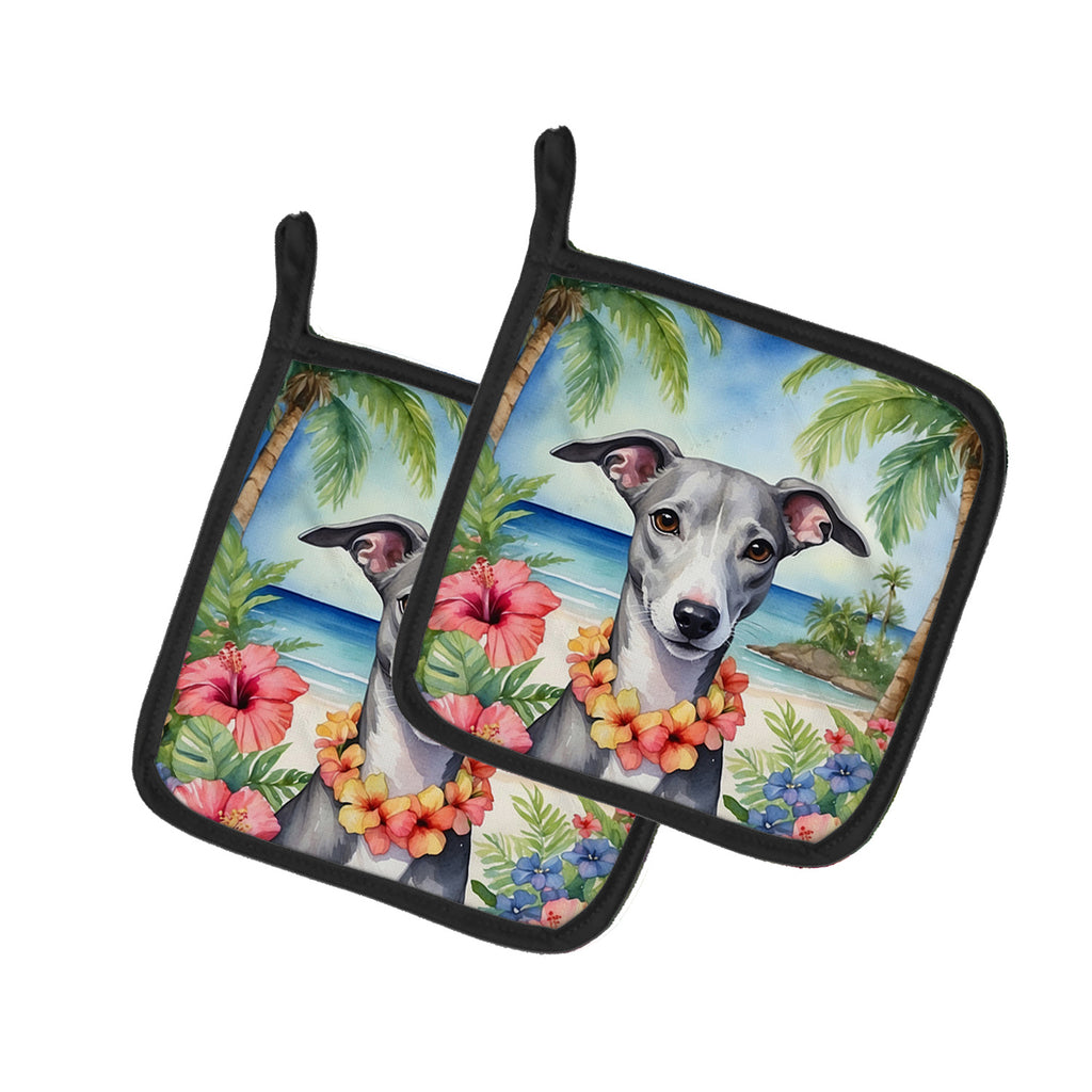 Whippet Luau Pair of Pot Holders | Heat Resistant Oven Hot Pads for Cooking, Baking & BBQ