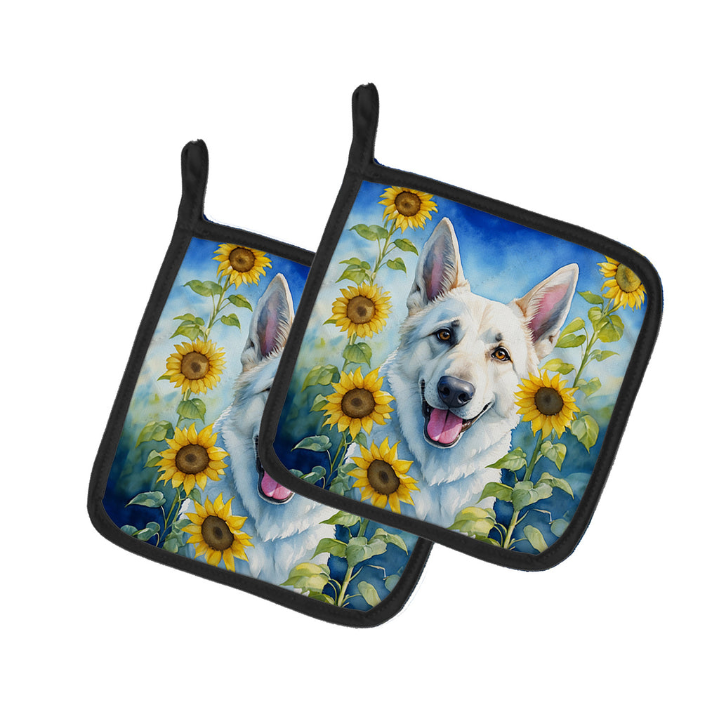 Pair of Pot Holders featuring breed specific German Shepherd artwork. A Pair of Pot Holders to match your kitchen decor. Made in the USA these are thick and functional. Full color artwork decorates the front polyester fabric of the hot pad and accented by a black trim. Use these at as a trivet for your Thanksgiving or Christmas tablescape. Filled with insulated fabric and quilted for durability. These colorful pot holders will make a great gift for your favorite home cook or executive chef. Each pot holder measures approximately 7 1/2 inches by 7 1/2 inches. A hanging tab is included.