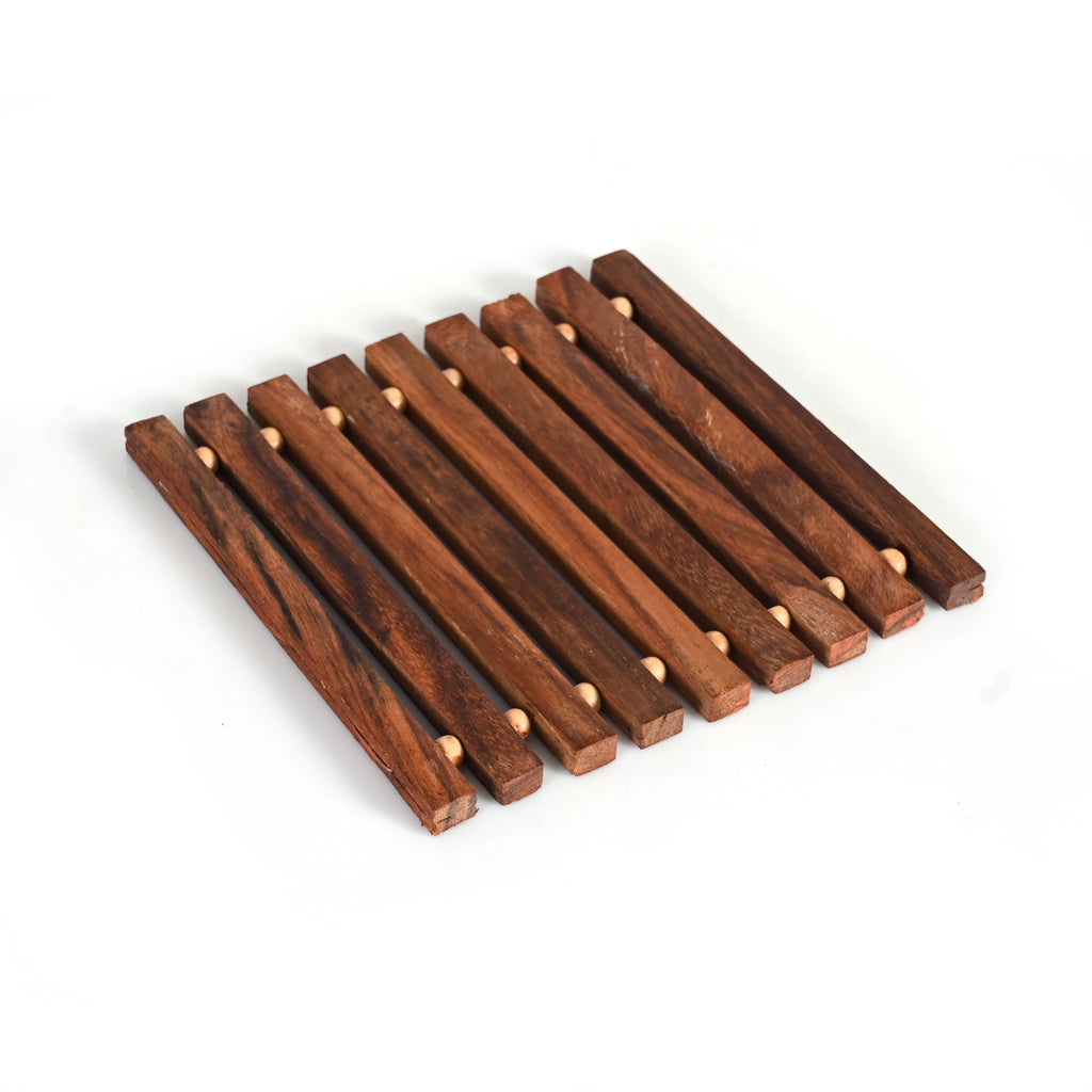 3.Elegant 2 Wooden Tea Coasters Set for Your Dining Table. Completely Handmade by skilled Artisans of India.