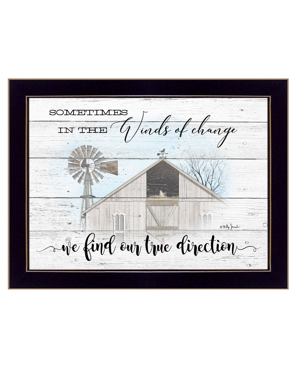 BJ1216-712 "Winds of Change" is by artisan Billy Jacobs this 18"x14" features a decorative Black Framed wall art. This print features a layered print with a rustic barnyard and a windmill. If you look in the top of the barn you can see a chicken resting in the straw. The script reads "Sometimes in the winds of change we find our true direction". Our products are proudly made by skilled American workers. The surface of our framed art is textured with a fade resistant coating, so no glass is necessary. A vegetable-based glue is used in the production of our products, and our frames are crafted from 100% recycled material. In keeping with our environmentally friendly approach toward manufacturing. •Print has fade resistant surface texture, no glass is necessary•Woman Owned Business (WBE)•Arrives ready to hang, no additional hardware needed on item•IndIvIdually hand crafted by skilled AmerIcan workers•Clean with Soft Dry Cloth Only