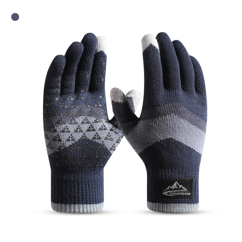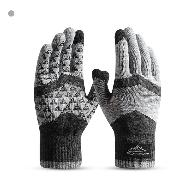 Winter Knit Gloves Men Women Fashion Warm Fleece Cycling Personality Windproof Triangular Non-Slip Touchscreen Wool Gloves