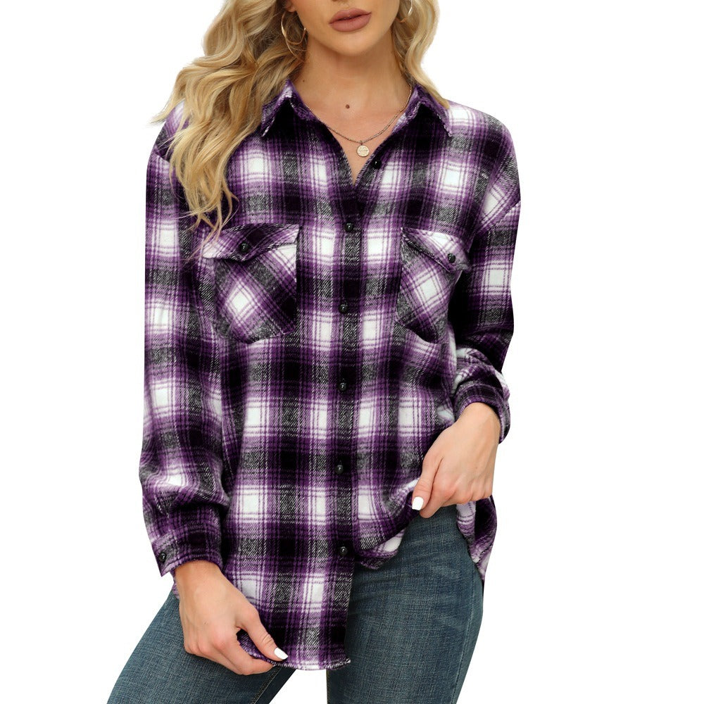 1.Womens Plaid Shirts Flannel Lapel Button Down Long Sleeve Shacket Jacket Loose Blouse Tops