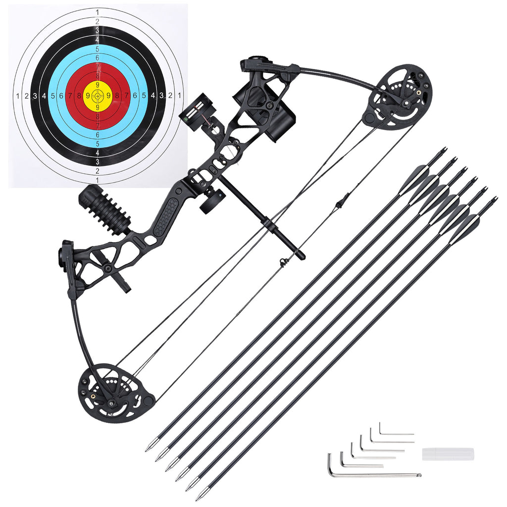 - Youth Compound Bow Set - Includes a 16 to 28 Lbs right hand compound bow;  target paper & 6 carbon arrows; Weights only 2.5 Lbs for easy grasping;  a perfect gift for teenagers;  young archers or beginners to learn & practice shooting;  outdoor hunting;  target archery & more